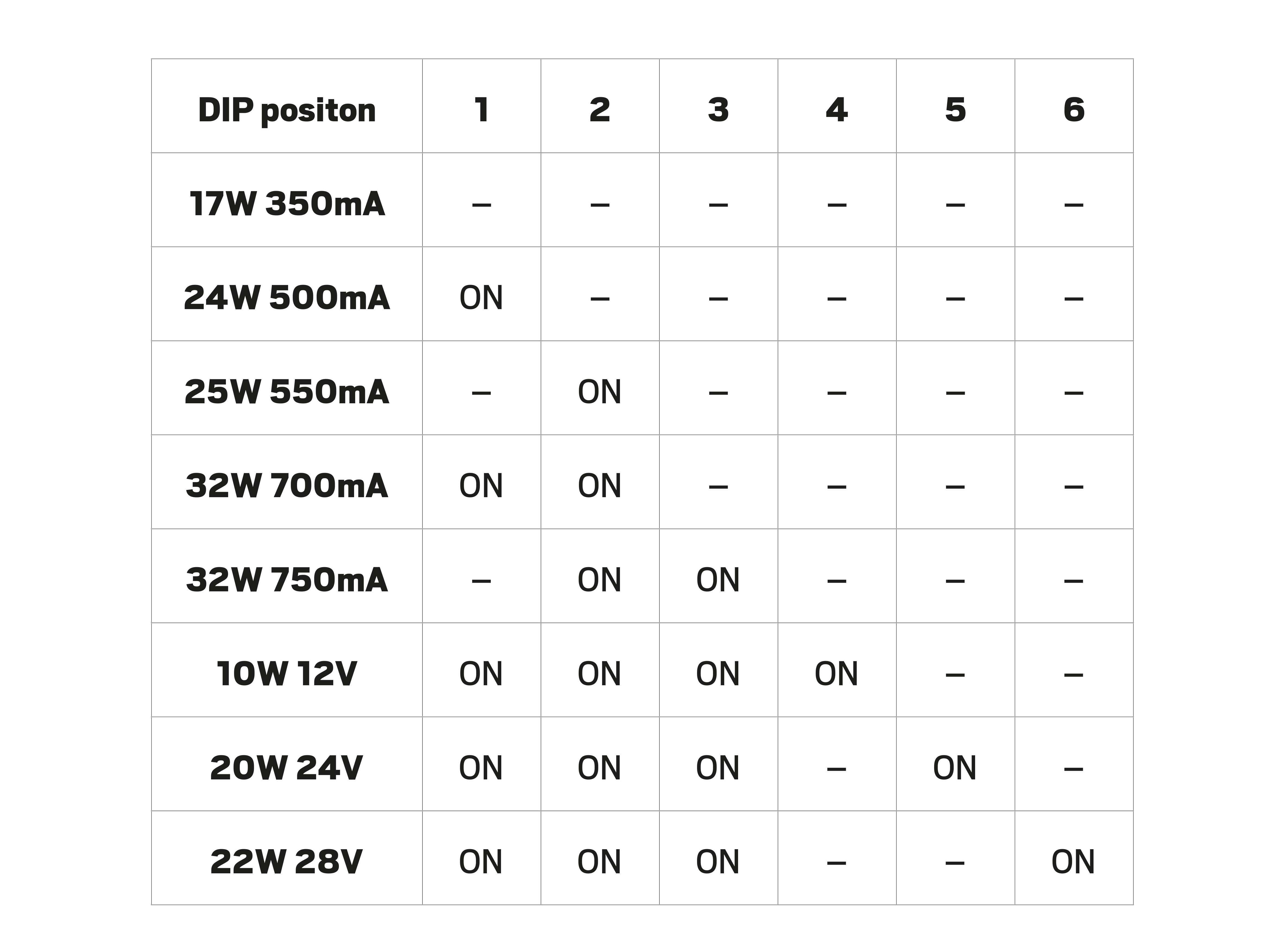 LED-valolähteille tarkoitettu all-in-one-muunnin sisäänrakennetulla PWM- himmentimellä. Voidaan ohjata ja himmentää monia LED-valonlähdemalleja. Ulostulo joko tasajännite DC (12 ja 24 V) sekä vakiovirta DC (250-900 mA). 1-10kpl ohjaimia voidaan liittää samaan ryhmään ja ohjata jousipalautteisella painonapilla tai 1-10VDC ohjaussignaalilla (esim. KNX). Mukana 15 cm synkronointikaapeli.