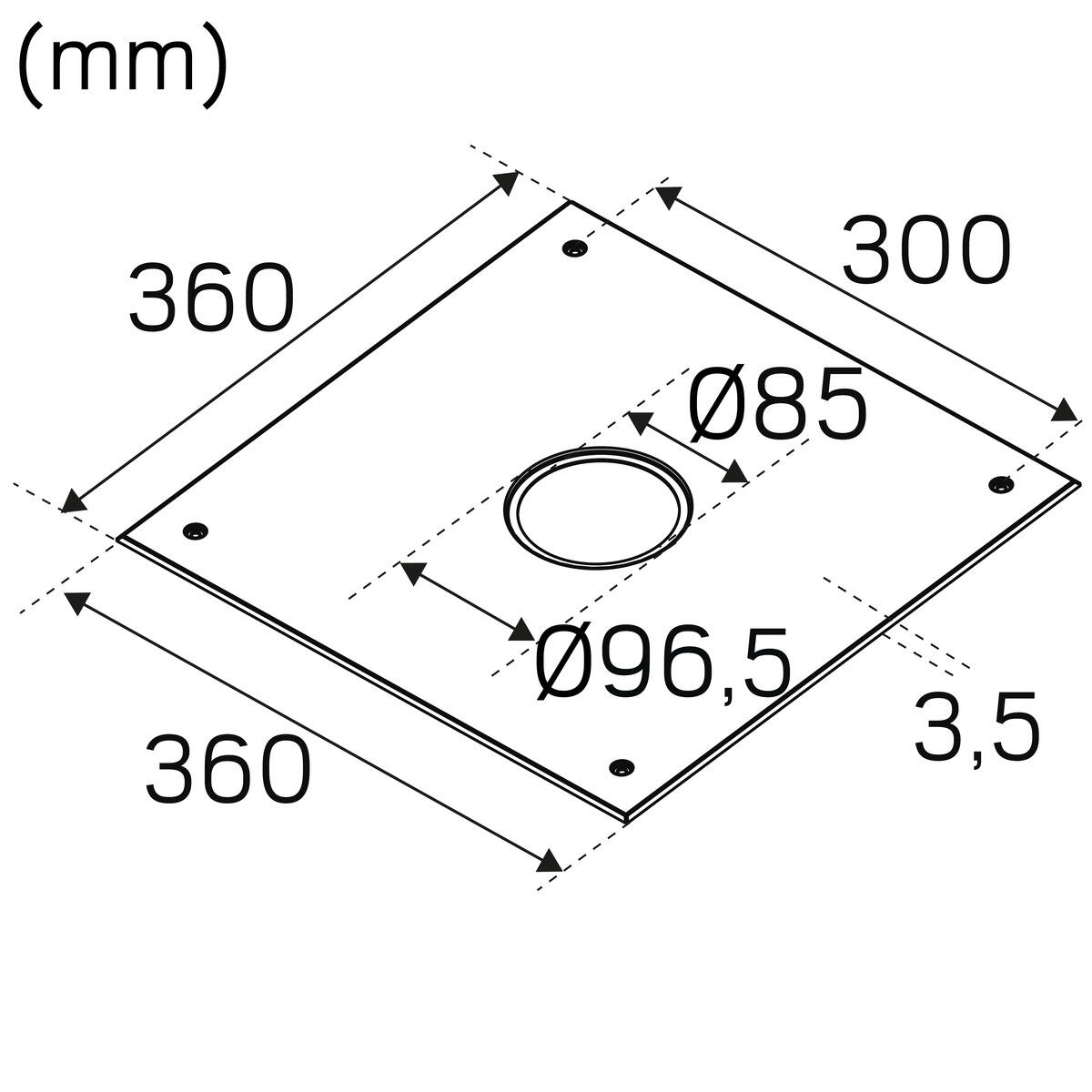 • Täydellinen jälkiasennustuote, peittää vanhat reiät kokoon Ø250-350mm/265x265-355x355mm asti