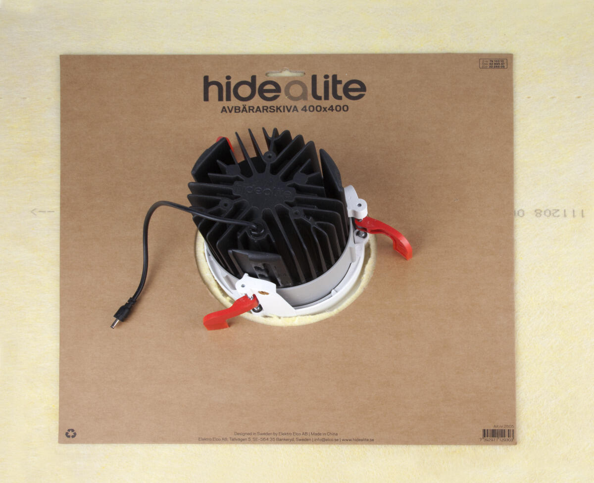 Taustalevy alasvaloille, käsiteltyä pahvia, helpottamaan alasvalojen asennusta pehmeään alakattoon. Estää jousia ja johtoja painumasta alakattolevyn läpi. Taustalevyssä on kolme reikäaihiota, jotka voidaan helposti leikata auki, sovitettu alasvalojen valikoimaamme. Nopea ja helppo asennus, joka suojaa alakattoa. Reikäkoko 75, 95, 110 150, 160, 170, 210, 230 tai 270mm, ei teräviä reunoja, kevyt (230g) ja hehkulankatestattu 650°C asti.