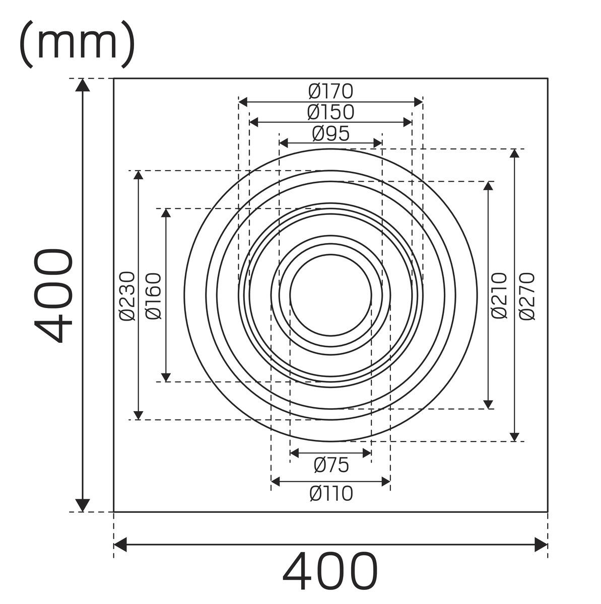 • Esipainetut reikämitat: 75-95-110-150-160-170-210-230-270 mm