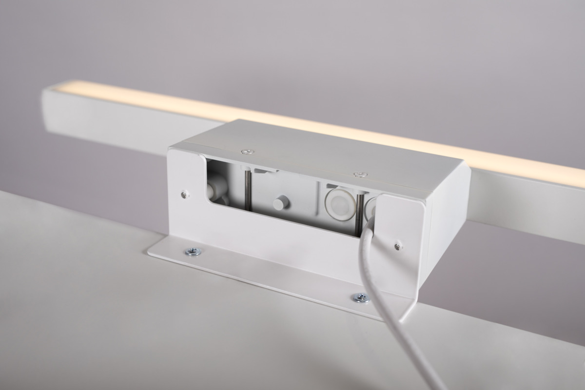 Ajattomasti muotoiltu ja himmennettävä peilivalaisin valkoiseksi maalattua alumiinia (RAL …
