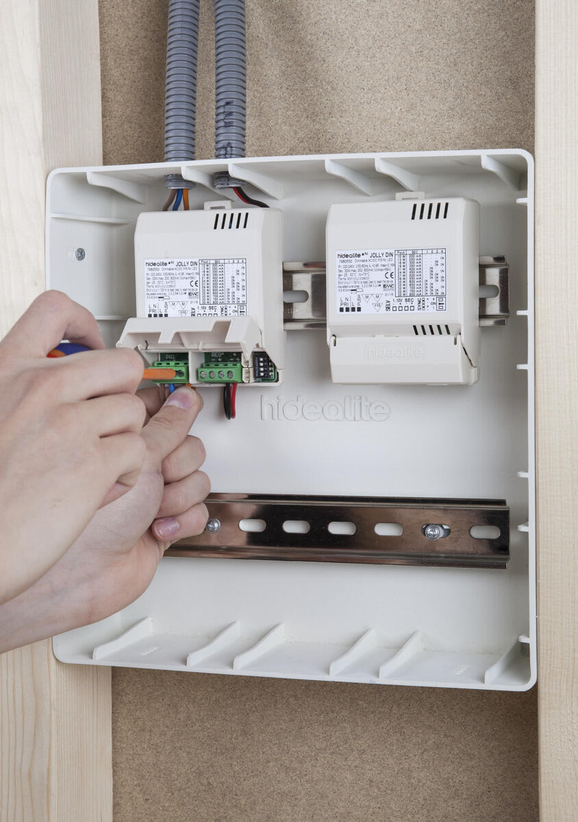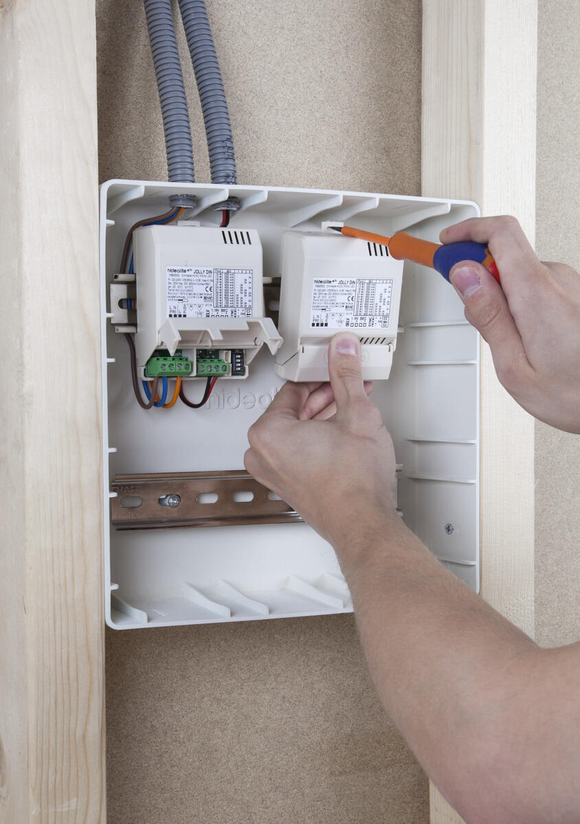 Vapaasti sijoitettava liitäntärasia sisäkäyttöön, halogeenivapaata muovia. Pikaliitäntärimoilla 8x0,5-2,5mm ohjaimen kytkentään/ketjutukseen. Soveltuu kytkentään ja ketjutukseen sekä ensiöpuolelle, että sekundääripuolelle valaistuksenohjaukseen ohjaimen ja valaisimien väliin. Helpottaa asennusta ja toimii kytkentäpisteenä, mutta myös piilottaa ohjaimen. Q-box soveltuu ensisijaisesti Jolly-ohjaimillemme ja asennus täysin työkaluton. Ruuviton vedonpoisto ja ketjutusmahdollisuus mahdollistavat huoltoystävällisen asennuksen.