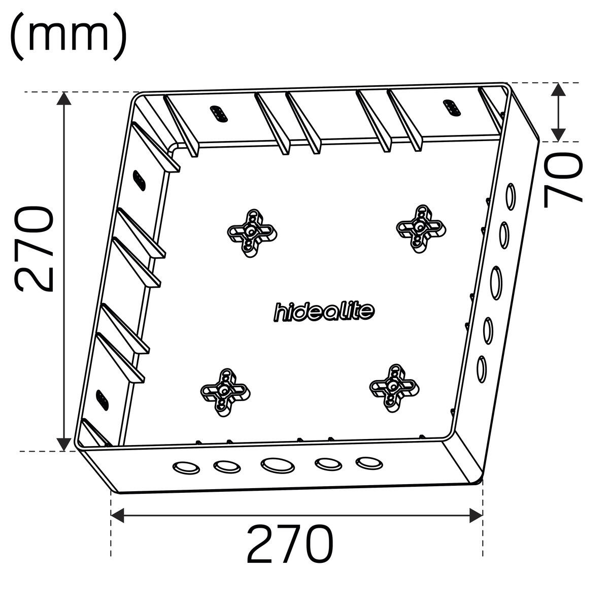 Matalarakenteisille alasvaloille tarkoitettu kupu. Helppo asennus 28x70 koolaukseen, cc 30cm väliin höyrysulkua puhkaisematta. Kiinnitysreikä kaikilla sivuilla. Päätyjen avoimet liitäntäpaikat varmistavat hyvän ilmanvaihdon valaisimen ympärillä. 5kpl kiinnikettä vaihtoehtoiseen ja ilman työkaluja tehtävään Spot Finder -magneettietsimen sijoittamiseen. Valmistettu ympäristöystävällisestä PA6-polyamidista, jonka luokitus on V0 ja joka läpäisee 950°C hehkulankatestin, jonka Intertek on vahvistanut.