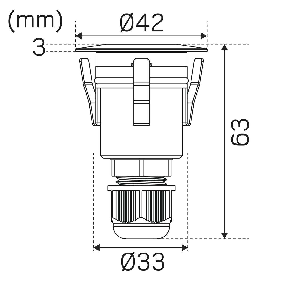 IP67-luokiteltu himmennettävä 230V -valaisin terassille ja maahan. Seinien, käytävien ja portaiden valaisuun ja merkitsemiseen lähinnä ulkona. Valaisinrunko ja valaisinrengas alumiinia, mukana kiinnike optimaaliseen asennukseen myös puuhun ja muuhun elävään materiaaliin. Integroitu vaihehimmennettävä ohjain, mukana 2m:n esiasennettu kumikaapeli. Valuhylsy tarvikkeena. Himmennettävissä monilla markkinoiden tavallisimmista himmentimistä. IP68-Maaliitoksella voit helpottaa asennusta entisestään.