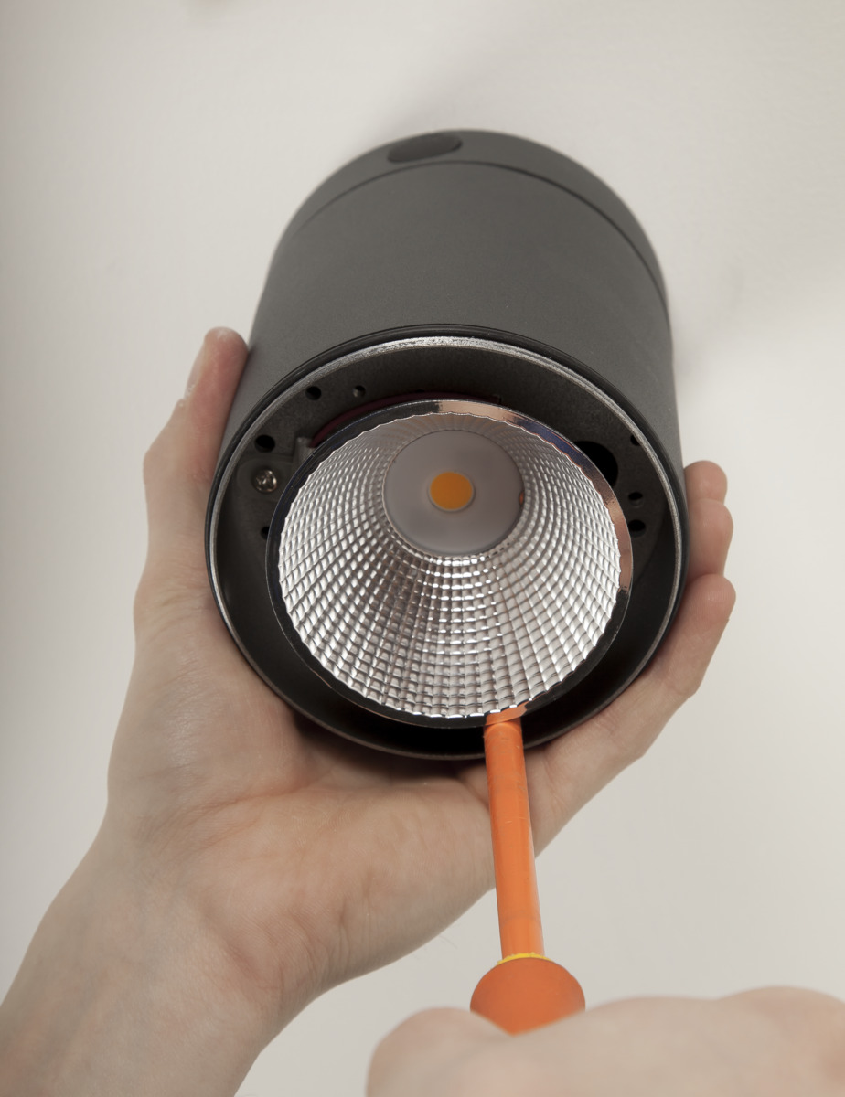 Ajattomasti muotoiltu kattovalaisin suoraan kattoon asennettavaksi. Häikäisemätön heijastintekniikka, suuri valon määrä. IP55-luokitus, anodisoitu ja jauhemaalattu vaativiin olosuhteisiin. Mataksi hiekkapuhallettu pinta. Helppo asentaa erillisen kaksoisläpiviennillä varustetun taustakappaleen ansiosta sekä pikaliitin ketjutusmahdollisuudella. Mukana koroke ja kehys kaapelin pinta-asennusta varten, helpottaa asennusta epätasaisiin kattopintoihin ja riviasennukseen. Sisäänrakennettu vaihehimmennettävä ohjain.