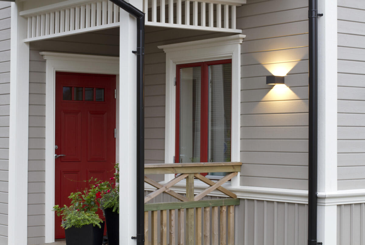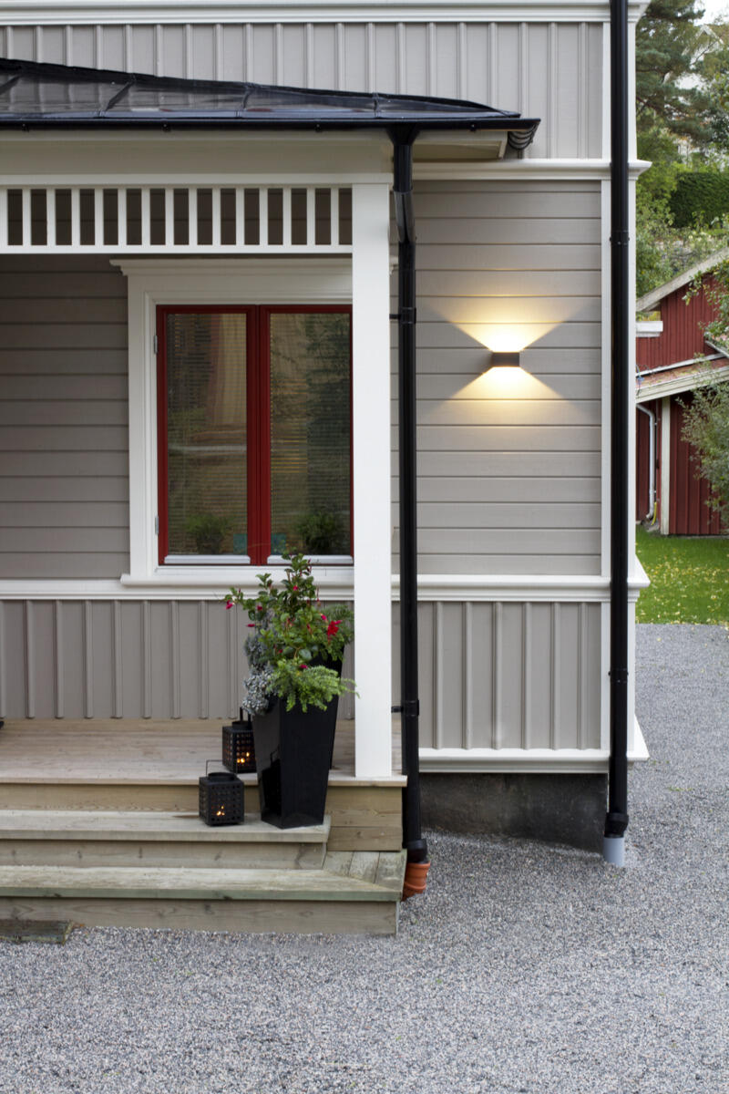 Perinteisesti muotoiltu julkisivuvalaisin, miellyttävän tasainen ja leveä valokuvio seinällä. Valaisimeen on saatavana kaksi integroitua pistorasiaa alapinnalla, mikä on erinomainen ratkaisu puutarhatyövälineille, sähkögrillille tai talviselle koristevalaistukselle. Pistorasioita ja valaistusta voidaan ohjata erikseen. Erittäin helppo asennus erillisen rungon, vähäisten ruuvien ja runsaan tilan ansiosta. Sisäänrakennettu ohjain, DIP-kytkimellä säädettävä valon määrä, 60% ja 100%. Voidaan himmentää ulkoisella ohjaimella, katso käyttöohje.