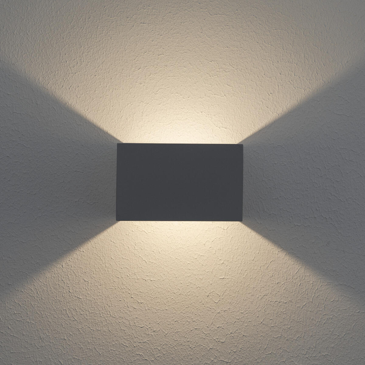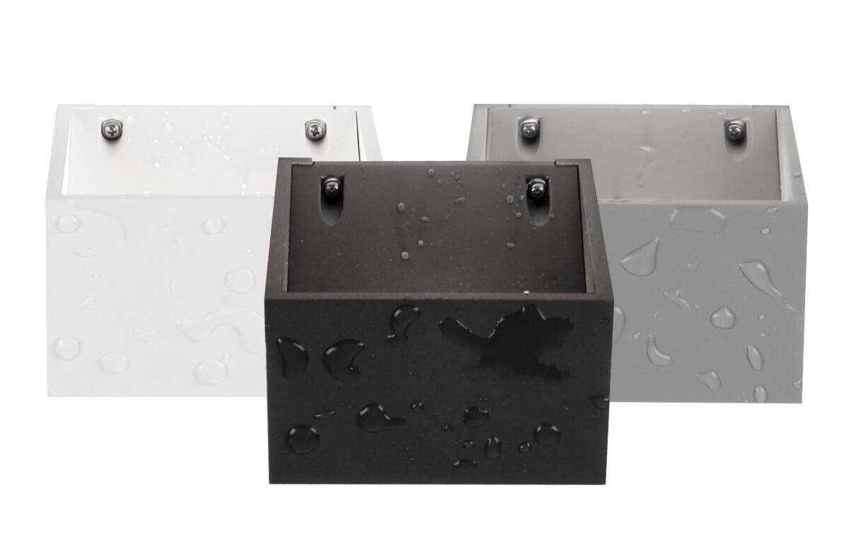 Trendikäs seinävalaisin ulkokäyttöön, valokuvio valaisee 145° sekä ylös että alas. Valaisimessa alumiininen runko, ja siinä on 6 W LED-Multichip. Sopii erinomaisesti asennukseen julkisivuihin, esim. sisäänkäynteihin ja terasseille yksityisissä ja julkisissa tiloissa. Valaisin on jauhemaalattu ja anodisoitu vaativia sääoloja varten. Integroitu ohjain. Seinälle asennukseen, piilotettu liitäntä.