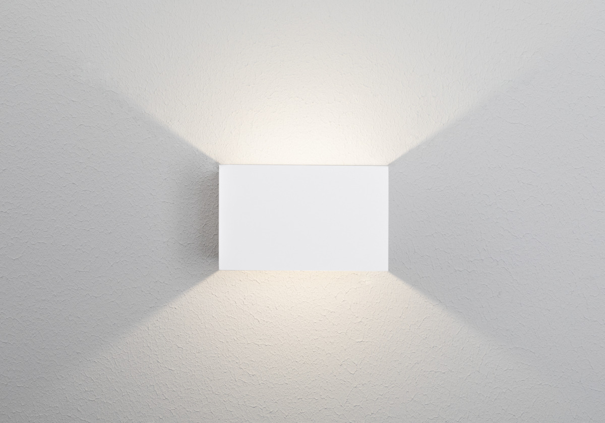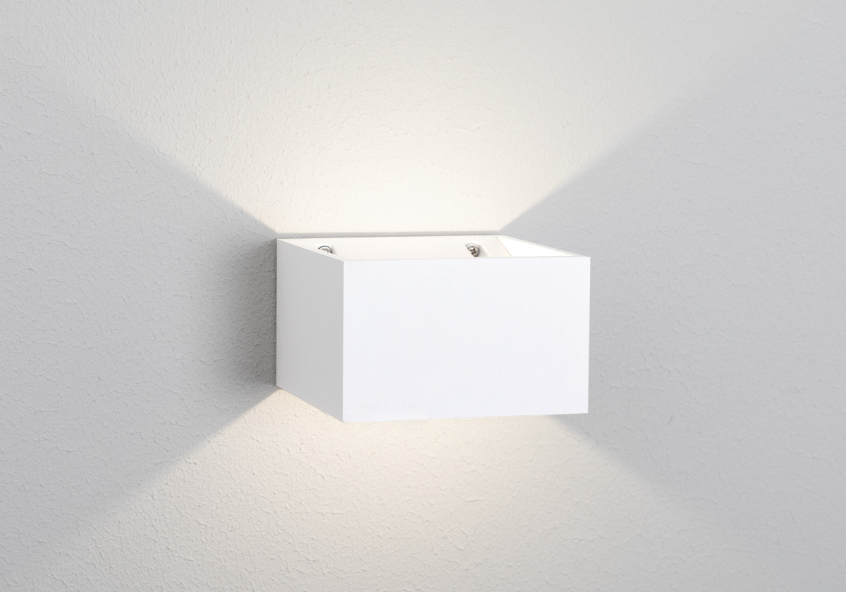 Trendikäs seinävalaisin ulkokäyttöön, valokuvio valaisee 145° sekä ylös että alas. Valaisimessa alumiininen runko, ja siinä on 6 W LED-Multichip. Sopii erinomaisesti asennukseen julkisivuihin, esim. sisäänkäynteihin ja terasseille yksityisissä ja julkisissa tiloissa. Valaisin on jauhemaalattu ja anodisoitu vaativia sääoloja varten. Integroitu ohjain. Seinälle asennukseen, piilotettu liitäntä.
