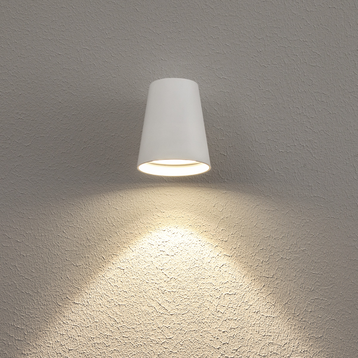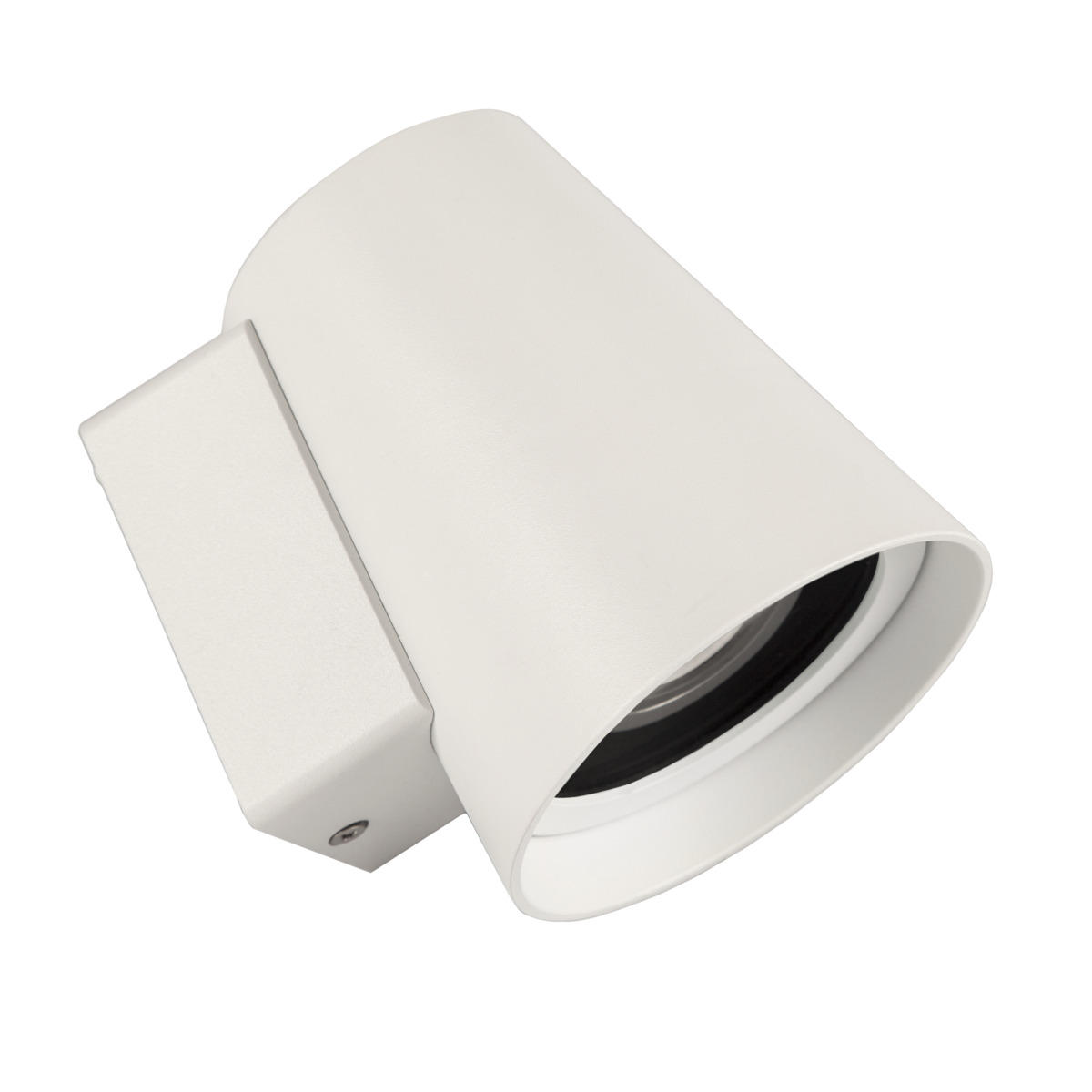 Seinävalaisin alas suunnatulla valolla, IP54-malli, julkisivujen, sisäänkäyntien jne. tehostevalaistukseen. Valaisinkotelo alumiinia, korroosionestokäsitelty ja maalattu kahdella polyesteripohjaisella jauhemaalikerroksella. Seinälle kiinnitettäväksi sisällä tai ulkona, piilotettu liitäntä. Toimitetaan GU10-kannalla vaihtoehtoisille valonlähteille suoraa 230 V kytkentää varten.