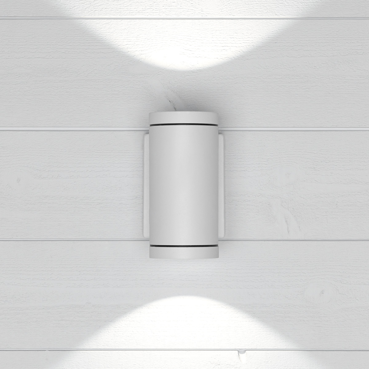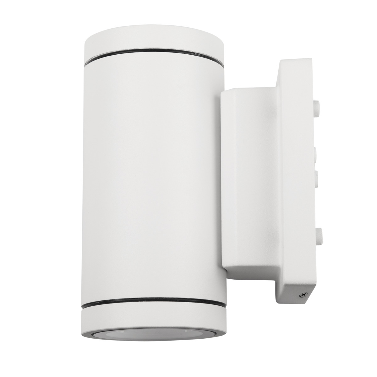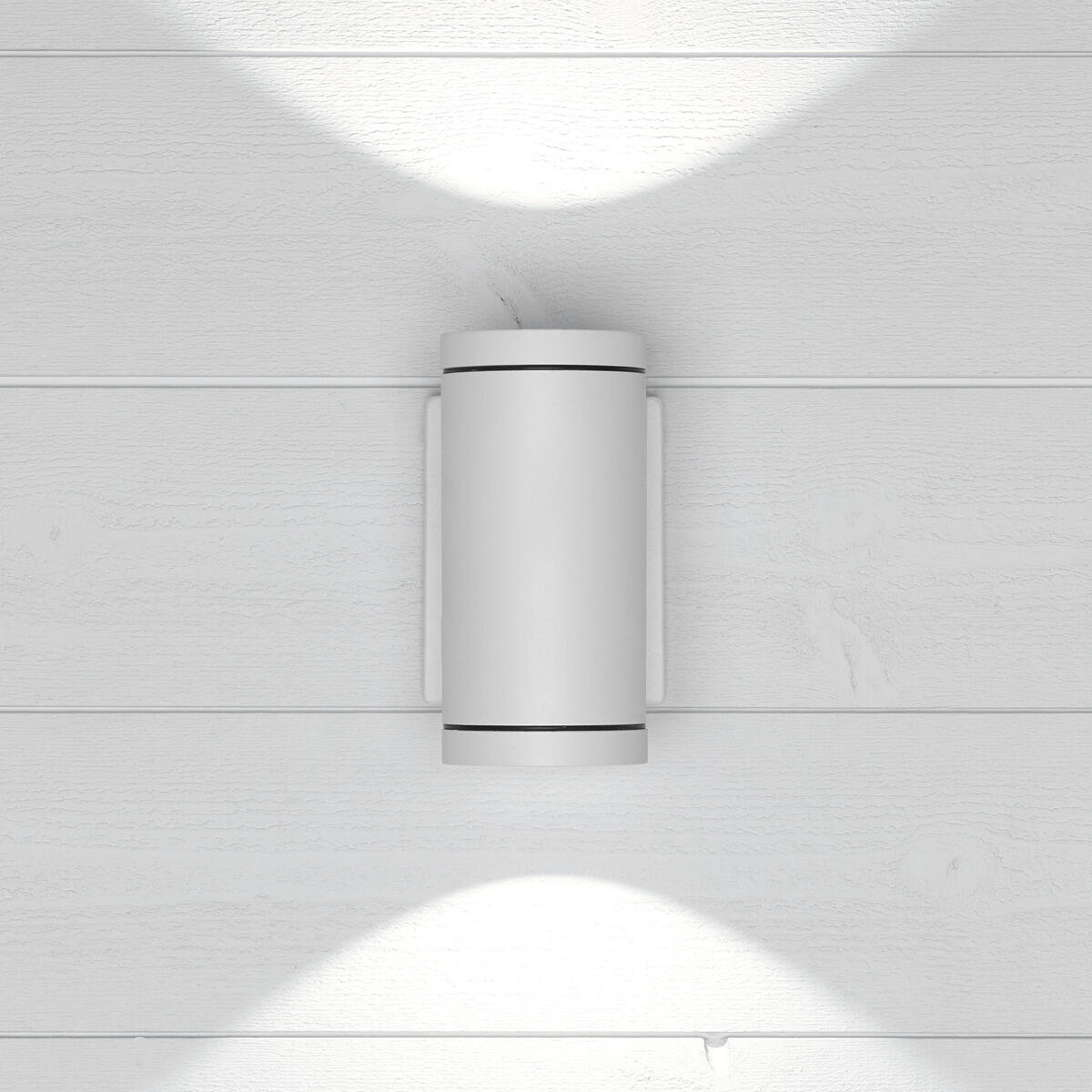 Ajattomasti muotoiltu seinävalaisin, valaisee ylös ja alas. GU10-kannan ansiosta värilämpötila ja valoteho voidaan valita vapaasti. Erillinen taustakappale kaksoisläpiviennillä sekä pikaliittimet ketjutusmahdollisuudella helppoa asennusta varten. IP55-luokitus sekä anodisoitu ja jauhemaalattu valaisinrunko koviin sääolosuhteisiin. Mukana toimitetaan korokkeet kaapelin pinta-asennusta varten.