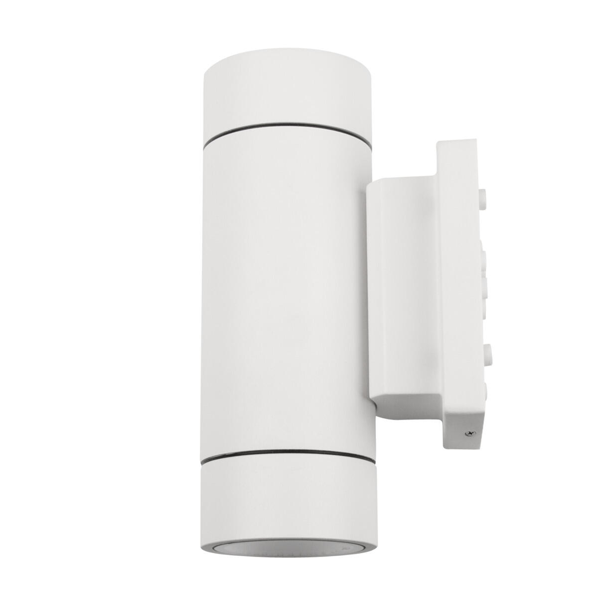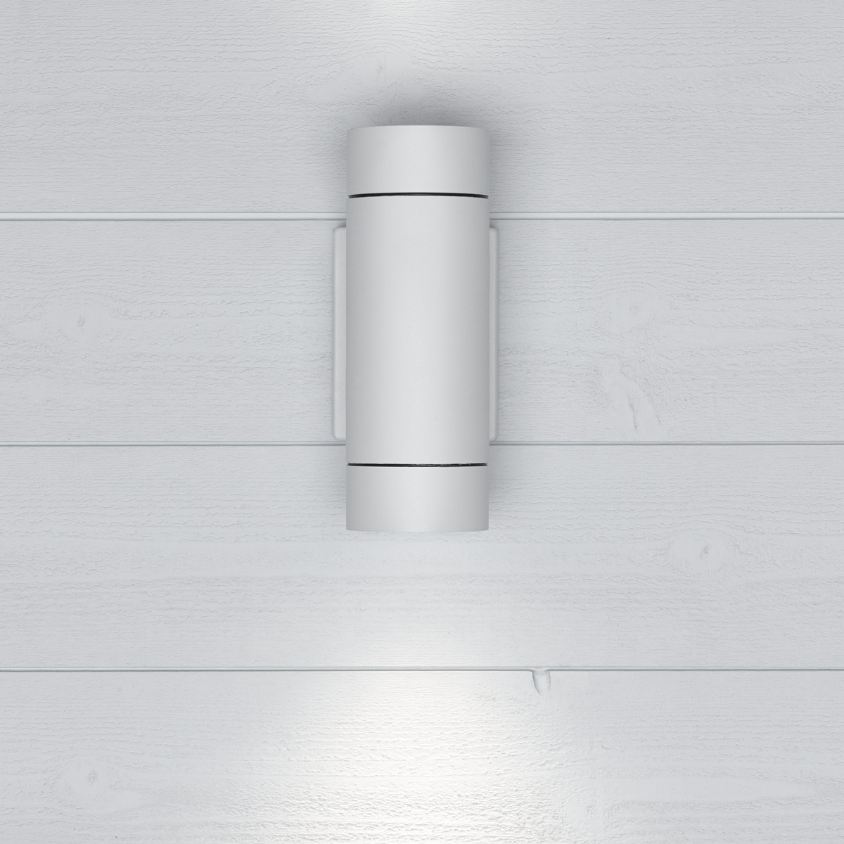 Ajattomasti muotoiltu seinävalaisin, valaisee ylös ja alas. GU10-kannan ansiosta värilämpötila ja valoteho voidaan valita vapaasti. Erillinen taustakappale kaksoisläpiviennillä sekä pikaliittimet ketjutusmahdollisuudella helppoa asennusta varten. IP55-luokitus sekä anodisoitu ja jauhemaalattu valaisinrunko koviin sääolosuhteisiin. Mukana toimitetaan korokkeet kaapelin pinta-asennusta varten.