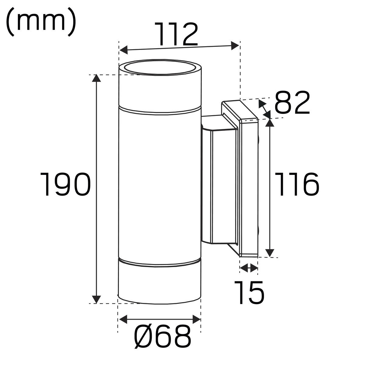 Ajattomasti muotoiltu seinävalaisin, valaisee alas. GU10-kannan ansiosta värilämpötila ja valoteho voidaan valita vapaasti. Erillinen taustakappale kaksoisläpiviennillä sekä pikaliittimet ketjutusmahdollisuudella helppoa asennusta varten. IP55-luokitus sekä anodisoitu ja jauhemaalattu valaisinrunko koviin sääolosuhteisiin. Mukana toimitetaan korokkeet kaapelin pinta-asennusta varten.