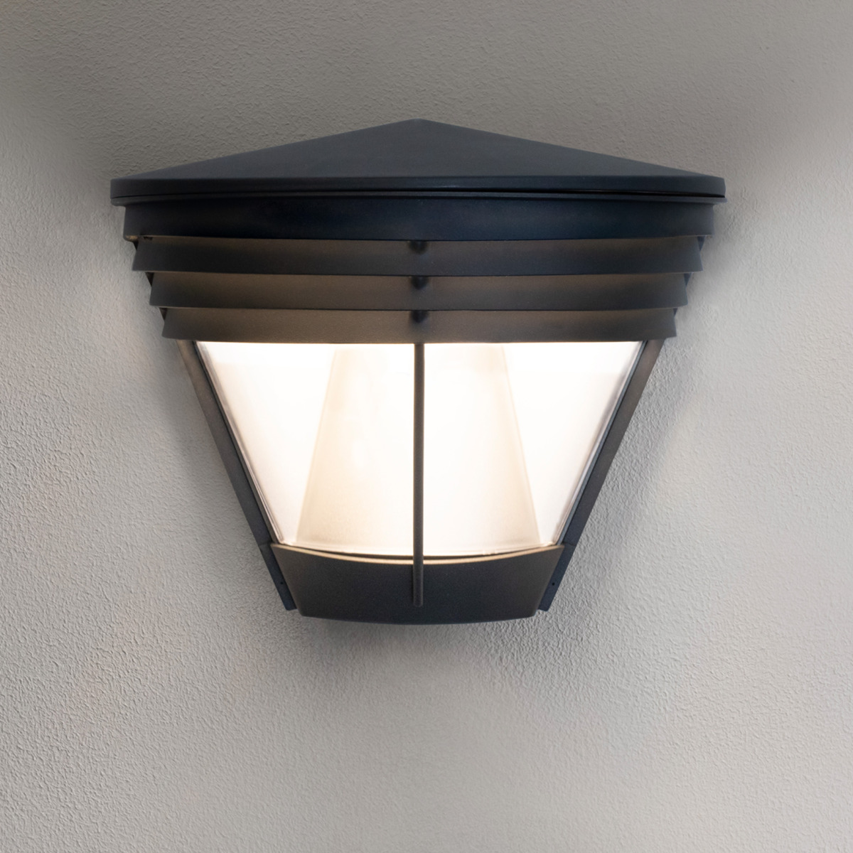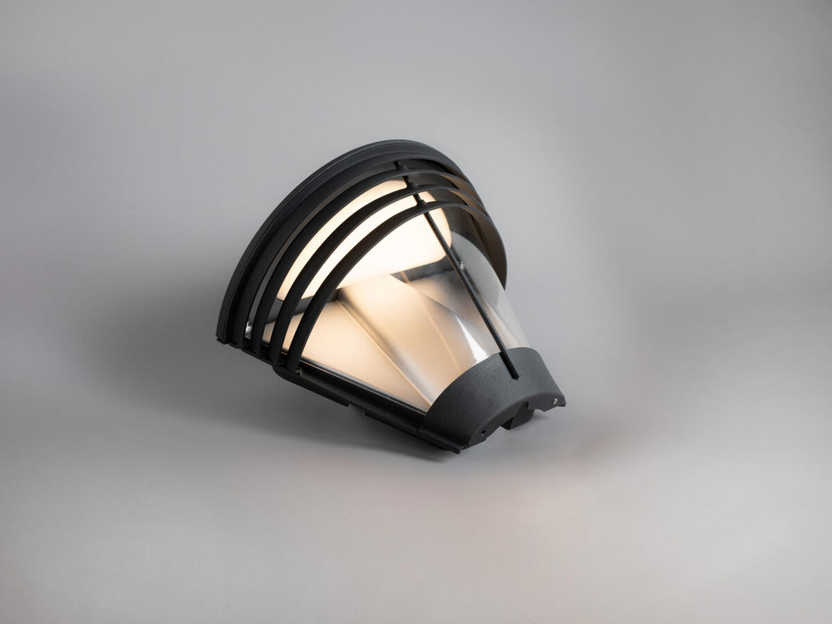 Perinteisesti muotoiltu julkisivuvalaisin, miellyttävän tasainen ja leveä valokuvio seinällä. Valaisimeen on saatavana kaksi integroitua pistorasiaa alapinnalla, mikä on erinomainen ratkaisu puutarhatyövälineille, sähkögrillille tai talviselle koristevalaistukselle. Pistorasioita ja valaistusta voidaan ohjata erikseen. Erittäin helppo asennus erillisen rungon, vähäisten ruuvien ja runsaan tilan ansiosta. Sisäänrakennettu ohjain, DIP-kytkimellä säädettävä valon määrä, 60% ja 100%. Voidaan himmentää ulkoisella ohjaimella, katso käyttöohje.