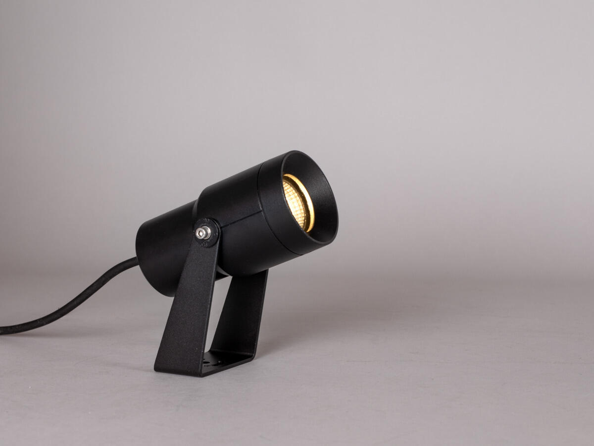 Pienikokoinen vaihehimmennettävä valonheitin, modernia LED-tekniikkaa, tyylikäs muotoilu. Mukauta valon määrä tarpeisiin. Anna valon määrän kasvaa puutarhasi myötä. Valaise puita, pensaita, terasseja ja julkisivuja sekä luo hienoja tehosteita. Musta malli antaa modernin vaikutelman. IP67-luokitus, valaisinkotelo korroosiosuojattua valualumiinia ja kestävä jauhemaalaus pohjoismaisen ilmaston haasteisiin. Valinnainen värilämpötila ColourTemp-DIP-kytkimellä. Asennetaan mukana tulevalla maapiikillä tai sangalla. Mukana sisäänrakennettu, himmennettävä liitäntälaite ja 2m kumikaapeli. Himmennettävissä markkinoiden tavallisimmilla himmentimillä.