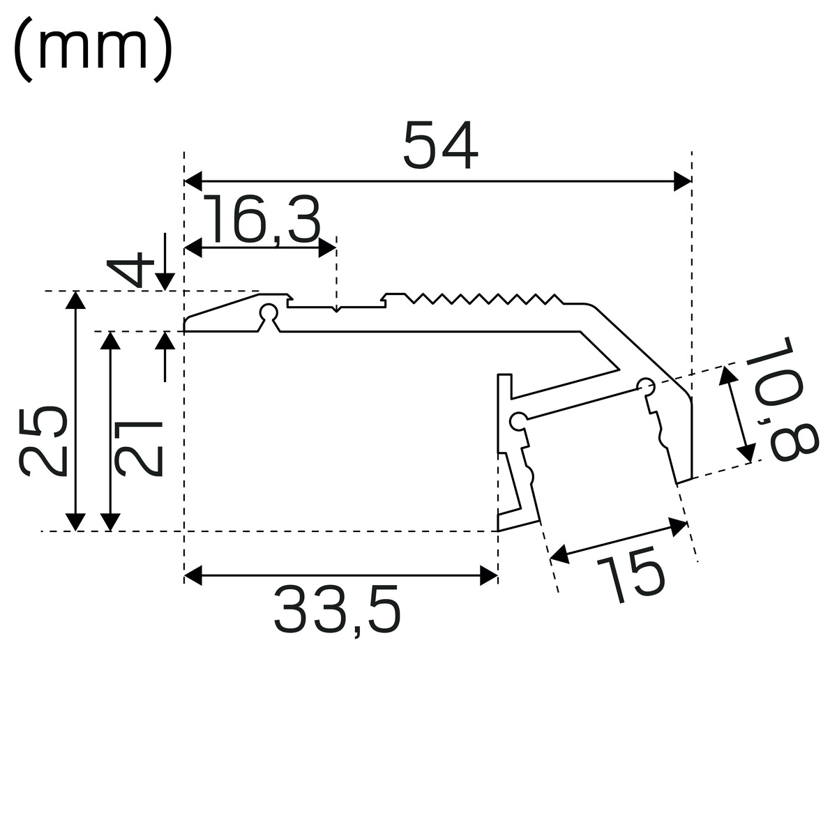 Kiilamainen profiili, joka luo pehmeän valaistuksen. Saatavana kolmena värinä: valkoisena, mustana ja alumiinisena. Luo sekä ylös- ja alasvalo tai käytä sivuvalona nurkassa. Profiilissa on tilaa sisäiselle kaapelinviennille, mikä nopeuttaa asennusta ja tarjoaa lisää asennusmahdollisuuksia. Pinta-asennettava profiili luo koristeellisen epäsuoran valon.