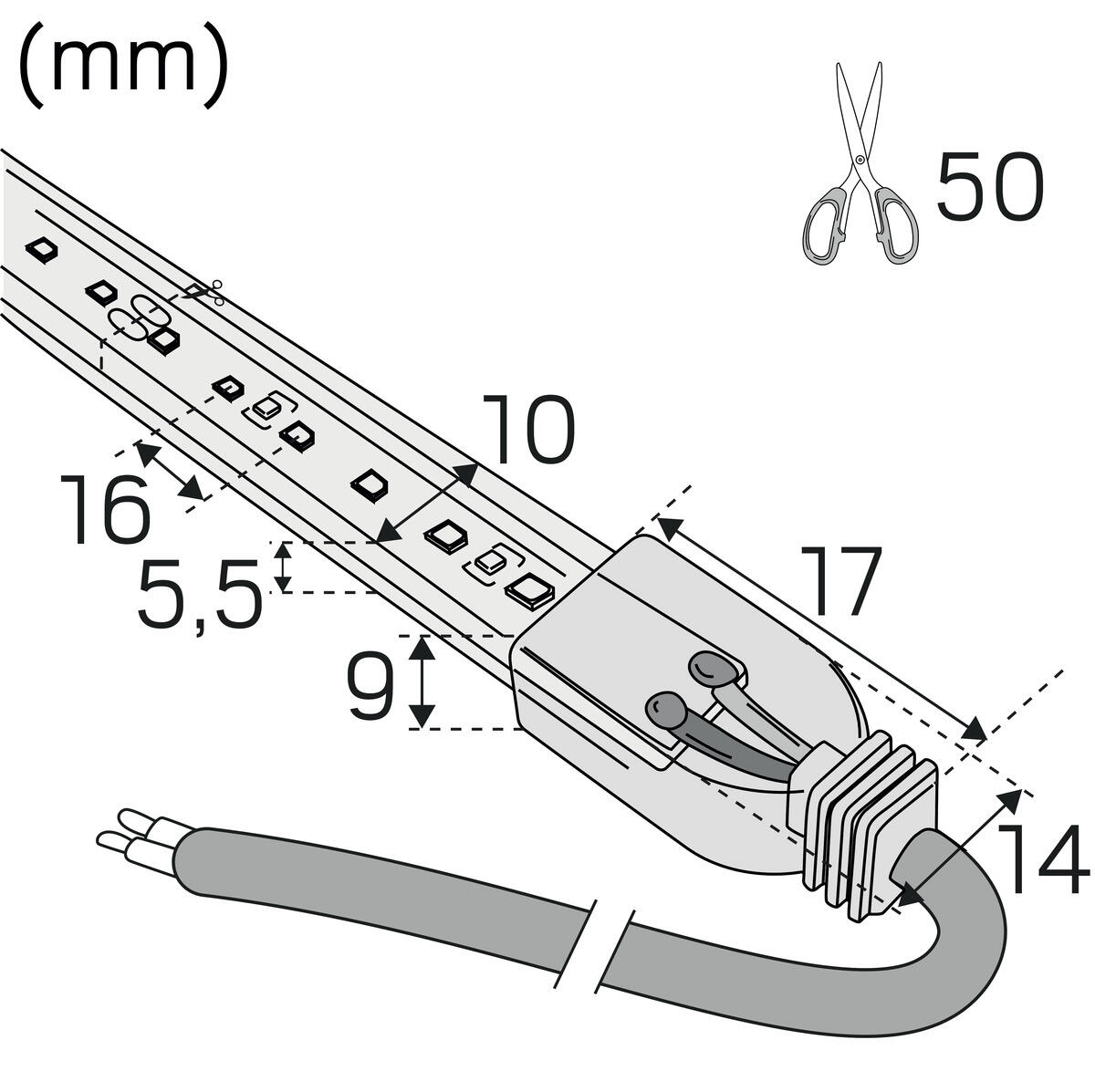 • Oletuksena metritavarana myytävä LED-nauha toimitetaan ilman liitosjohtoa. Pyydä tarjous LED-nauhasta haluamasi mittaisella liitosjohdolla varustettuna