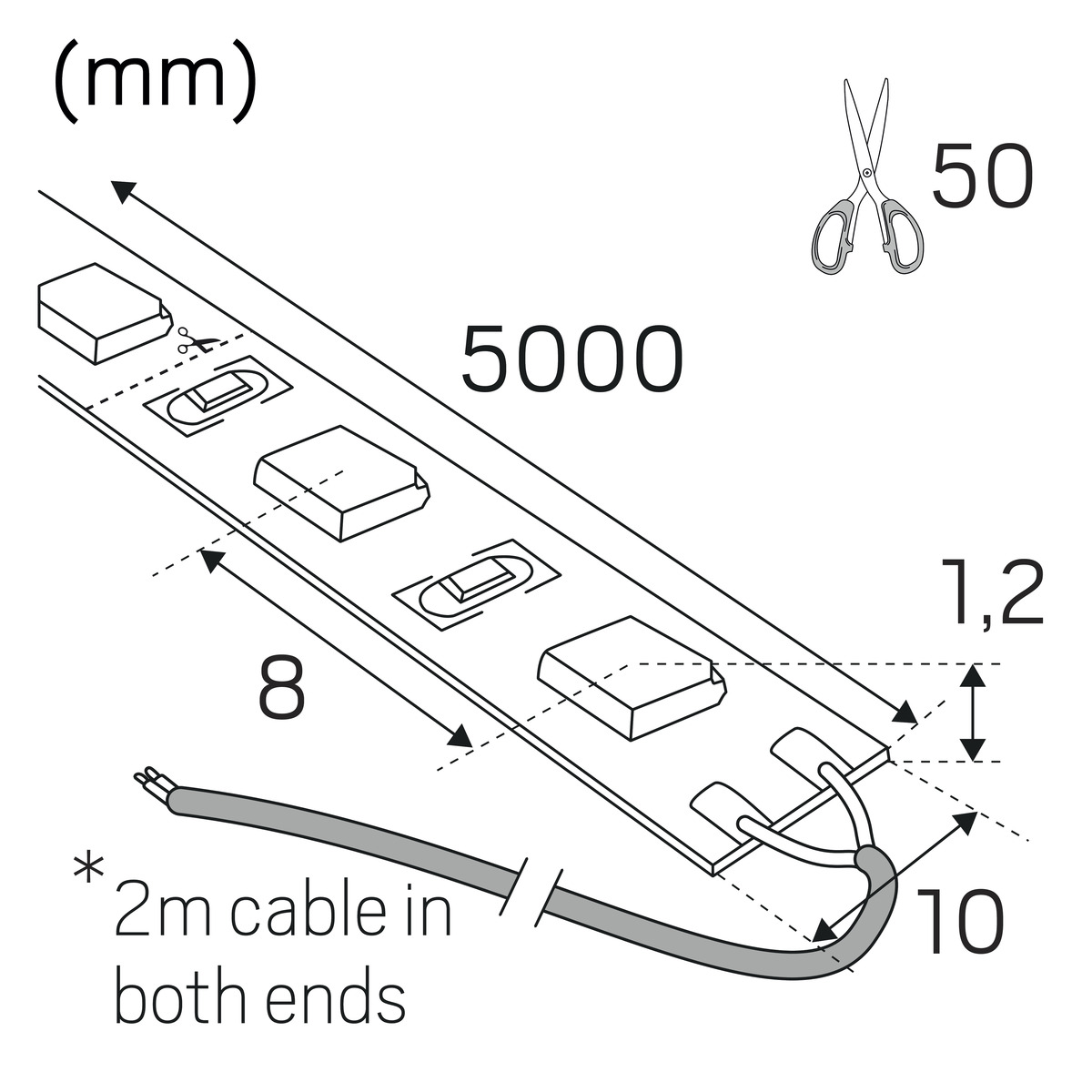 • Oletuksena metritavarana myytävä LED-nauha toimitetaan ilman liitosjohtoa. Pyydä tarjous LED-nauhasta haluamasi mittaisella liitosjohdolla varustettuna