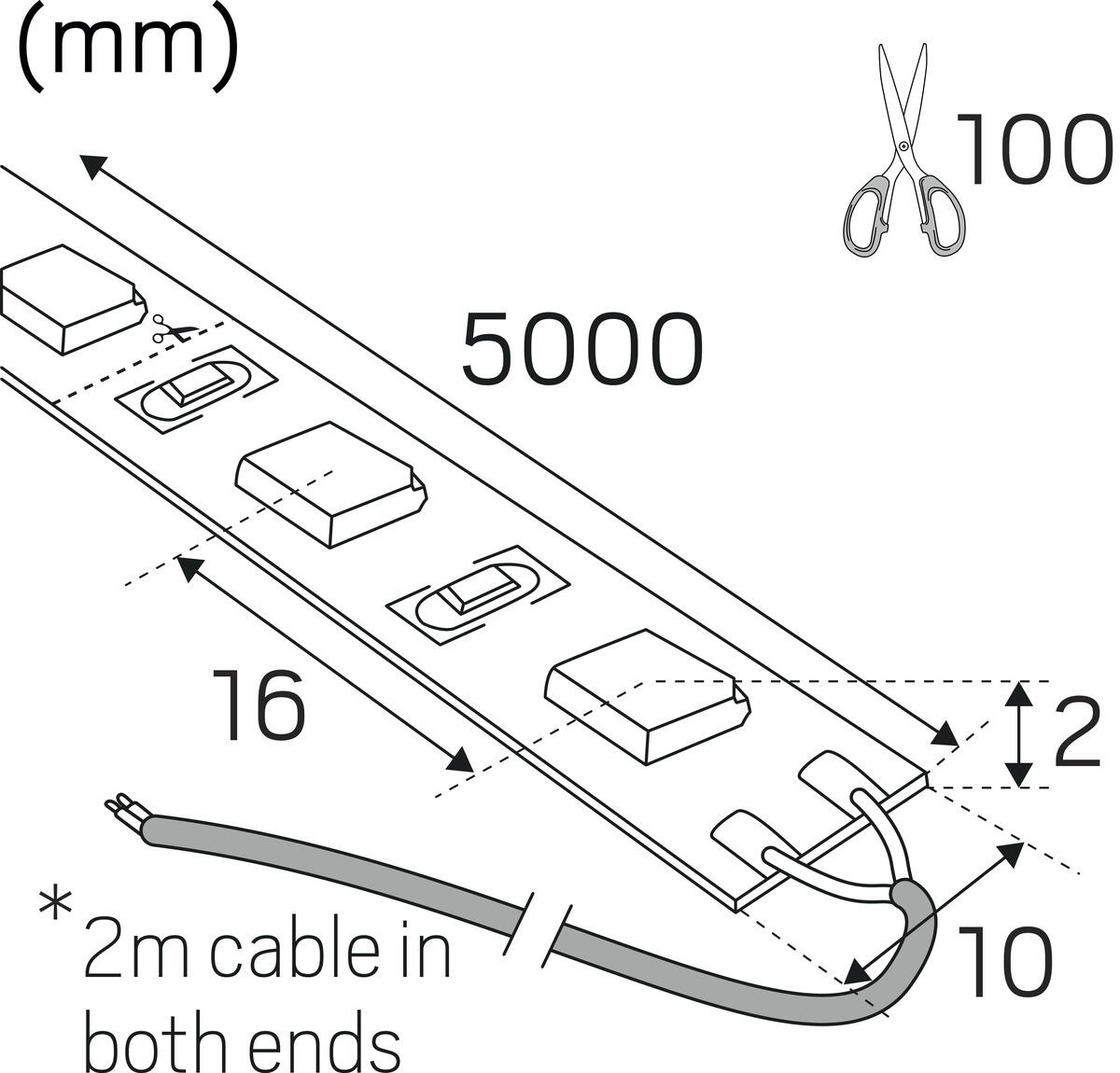 • Oletuksena metritavarana myytävä LED-nauha toimitetaan ilman liitosjohtoa. Pyydä tarjous LED-nauhasta haluamasi mittaisella liitosjohdolla varustettuna
