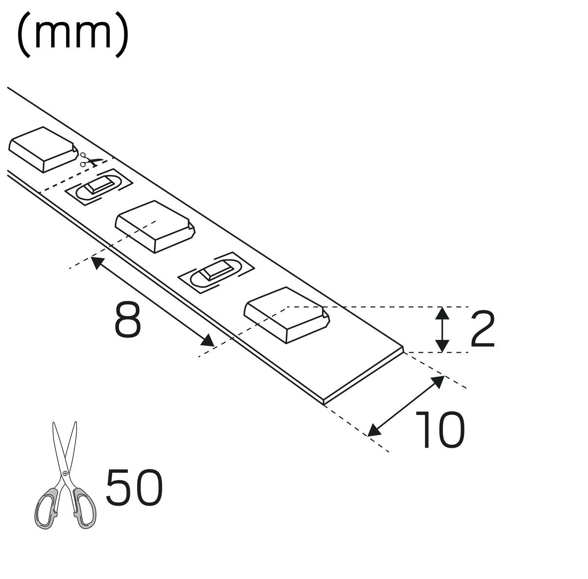 • Oletuksena metritavarana myytävä LED-nauha toimitetaan ilman liitosjohtoa. Pyydä tarjous LED-nauhasta haluamasi mittaisella liitosjohdolla varustettuna