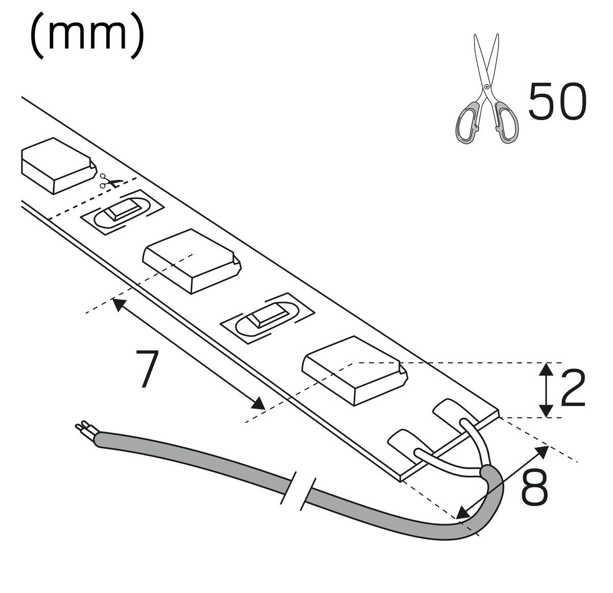 • Oletuksena metritavarana myytävä LED-nauha toimitetaan ilman liitosjohtoa. Pyydä tarjous LED-nauhasta haluamasi mittaisella liitosjohdolla varustettuna