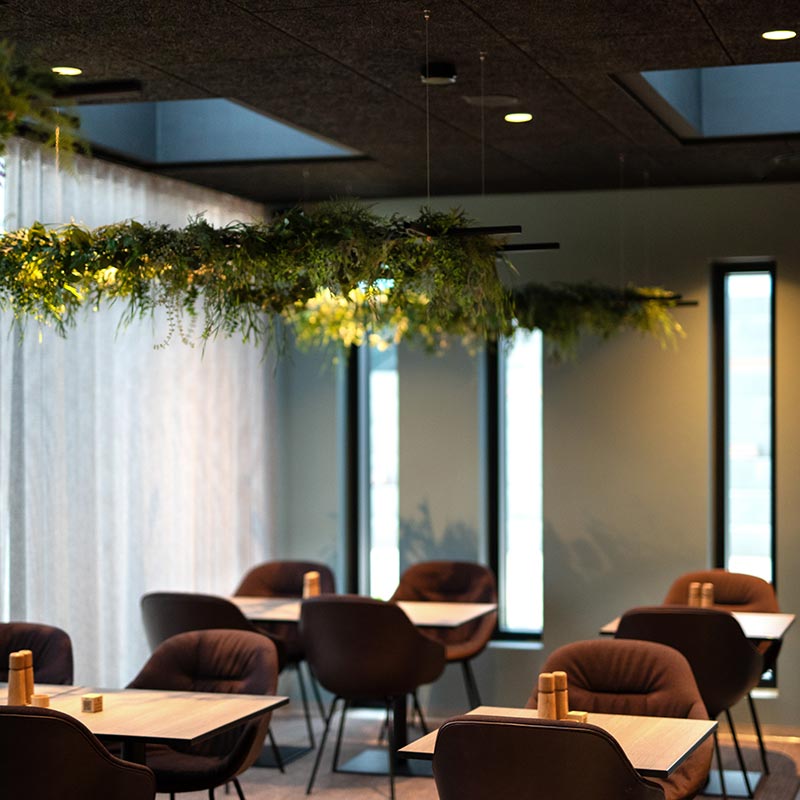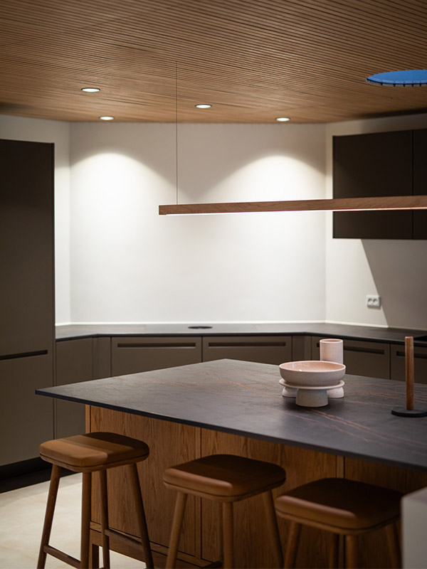 Bortenfor det livlige spa-området tilbyr noen avsidesliggende bygninger en fredelig retrett. Disse bygningene er ideelle for studiegrupper eller forretningsselskaper som ønsker å arbeide med sine prosjekter i et avslappet miljø. Interiøret er bevisst enkelt og funksjonelt, med en spartansk sjarm som fremheves av tre detaljer og komfortable skinnseter. I noen av rommene er det mulig å overnatte, noe som gjør disse bygningene til en allsidig destinasjon for både arbeid og hvile. I disse rommene er den innfelte armaturen Globe G2 Recessed installert for å skape den perfekte balansen mellom stil og funksjonalitet. Dens kuppede reflektor og moderne design gjør at den integreres fint i taket. Armaturene gir ikke bare praktisk lys for arbeid og lesing, men skaper også myke og innbydende lysbilder som gir liv til veggene og forbedrer atmosfæren i kjøkken og soverom. Den subtile belysningen i de rolige omgivelsene bidrar til et miljø som er optimalt for både ettertanke og konsentrasjon.