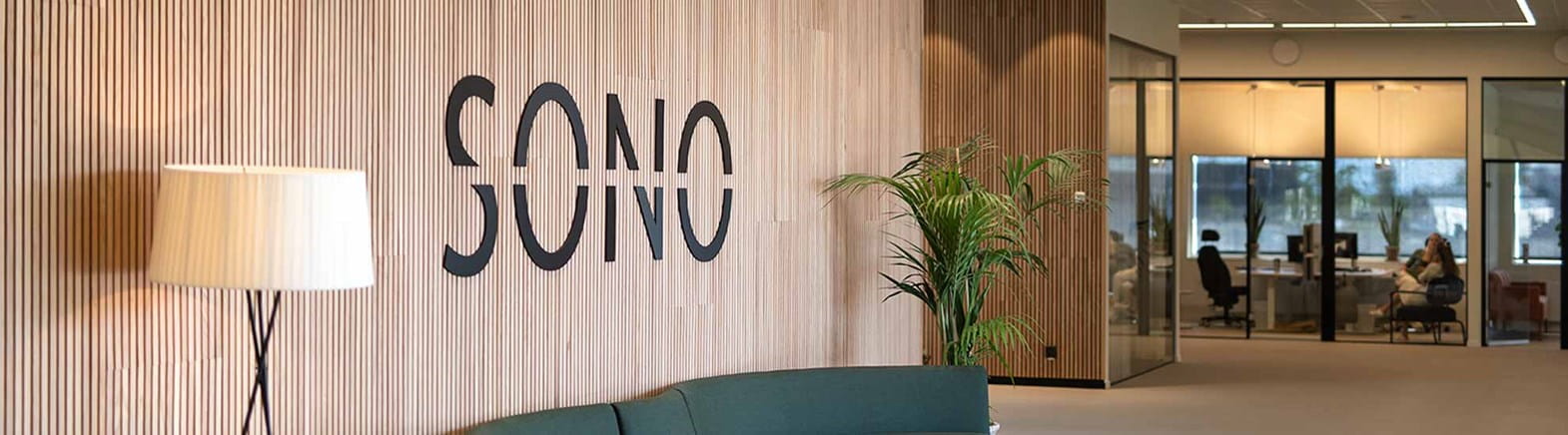 Hide-a-lite ble raskt det naturlige valget for å utvikle et belysningskonsept til SONO brands’ nybygde lokaler. Lignende moodboards ble sendt tilbake, supplert med valg av armaturer og forslag for å matche SONO brands’ tanker og visjoner. Belysningen resulterte i en konseptuell tilnærming med relativt få forskjellige produkter for de uli-ke områdene; inngang, kontorer, spiserom, konferanserom, toaletter og lagerområde.