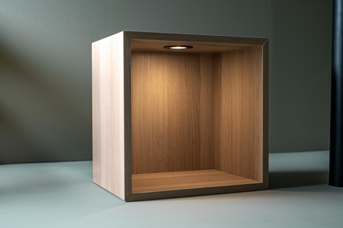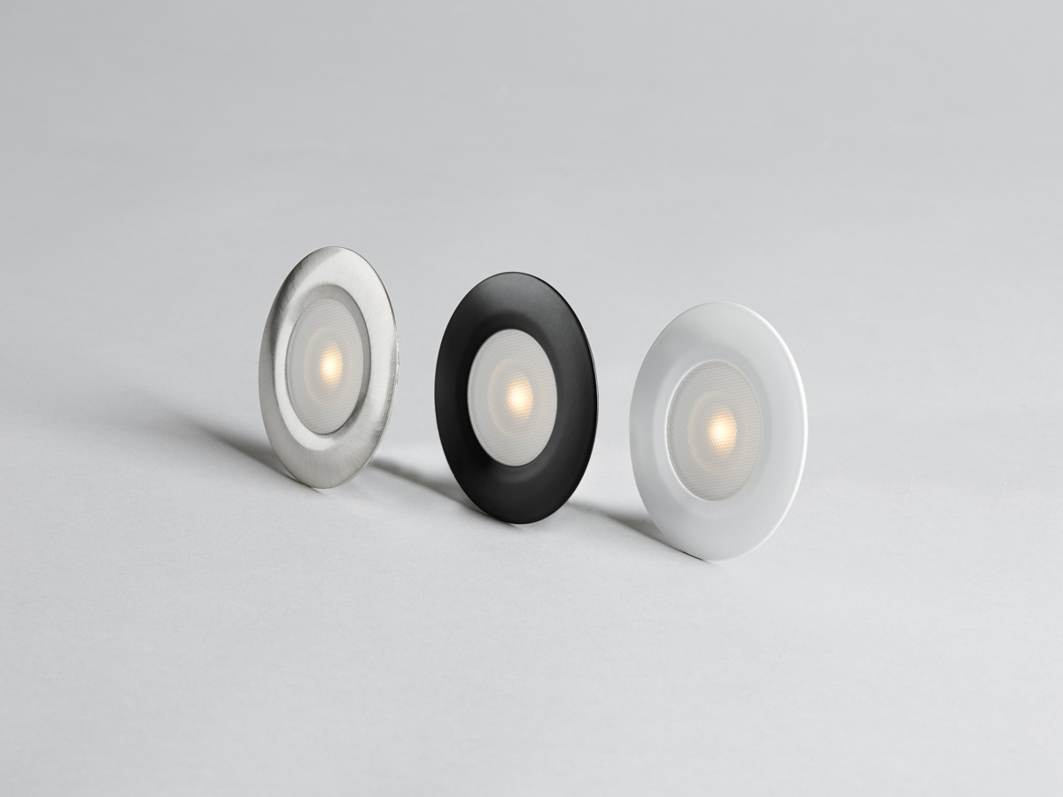 LED-armatur med en innbyggingsdybde på bare 9 mm, perfekt til skapbelysning og under hyller på kjøkken og bad. Energieffektiv LED-lyskilde på 2W med 55° lysspredning. Erstatter tilsvarende 10W halogenspoter med en energibesparelse på 80%. Armaturhus i aluminium. Leveres med 2m kabel med hurtigkontakt og kobles til LED-trafo 12V DC via parallellkobling. Kan lysreguleres med LED-dimmer. Avstandsring for utenpåliggende montering finnes som tilbehør.