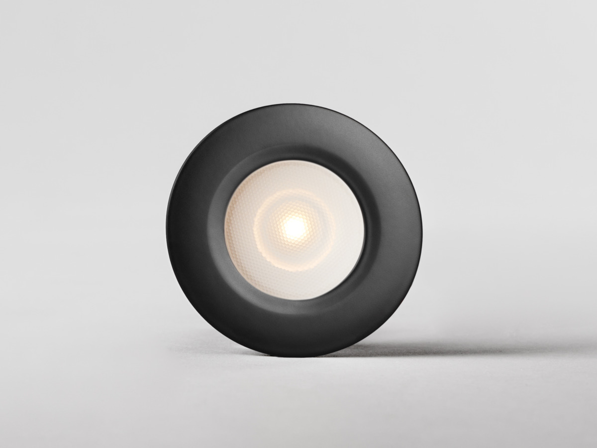 Lavtbyggende minidownlight IP44 med integrert hurtigkobling for forenklet og smart seriekobling, eliminerer plunder med eksterne skjøtestykker og minimerer feilkilder. Energieffektiv 3,2W/350mA erstatter 25-30W halogen armaturer med svært god fargegjengivelse, Ra>90. Passer utmerket å felle inn i skap, hyller og nisjer m.m. Distansering og triangelformet påbyggingsramme finnes som tilbehør for utenpåliggende montering. Kabel 2m med minikontakt følger med. Tune-versjon er bare fasedimbar, og passer med Konverter Micro/Mini MD Fdim.