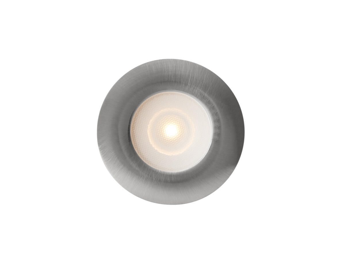 LED-armatur med en innbyggingsdybde på bare 9 mm, perfekt til skapbelysning og under hyller på kjøkken og bad. Energieffektiv LED-lyskilde på 2W med 55° lysspredning. Erstatter tilsvarende 10W halogenspoter med en energibesparelse på 80%. Armaturhus i aluminium. Leveres med 2m kabel med hurtigkontakt og kobles til LED-trafo 12V DC via parallellkobling. Kan lysreguleres med LED-dimmer. Avstandsring for utenpåliggende montering finnes som tilbehør.