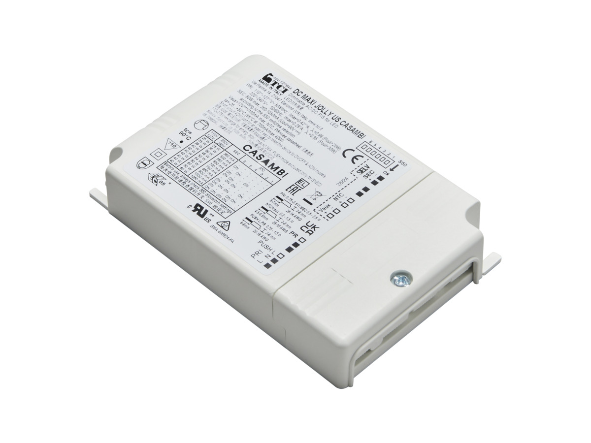 Alt-i-ett-konverter med innebygd hybrid-dimmer for regulering med standard DALI2-grensesnitt. (1-100%). Klarer ved hjelp av en enkel innstilling å drive og regulere lyset til flere typer LED-lyskilder, både konstantspenning DC (24V) og konstantstrøm DC (250, 350, 400, 450, 500, 550, 600 og 700mA). Enkel innstilling av strømstyrke med DIP-bryter. Forminsket format for enkel montering i 1 ½ boks eller sammen med armaturen i downlight kasse.
