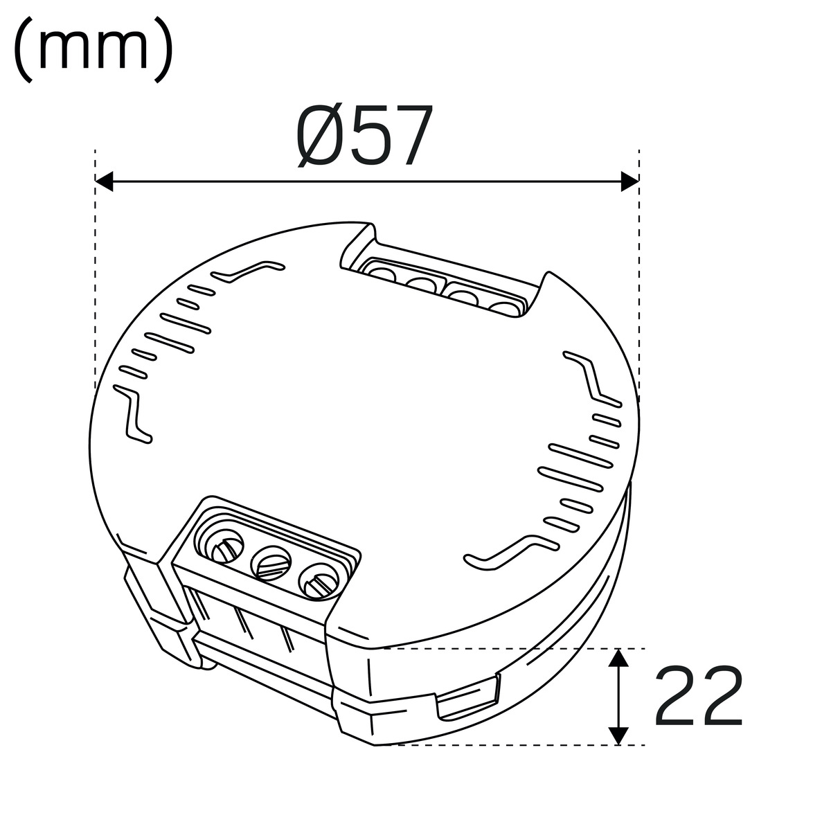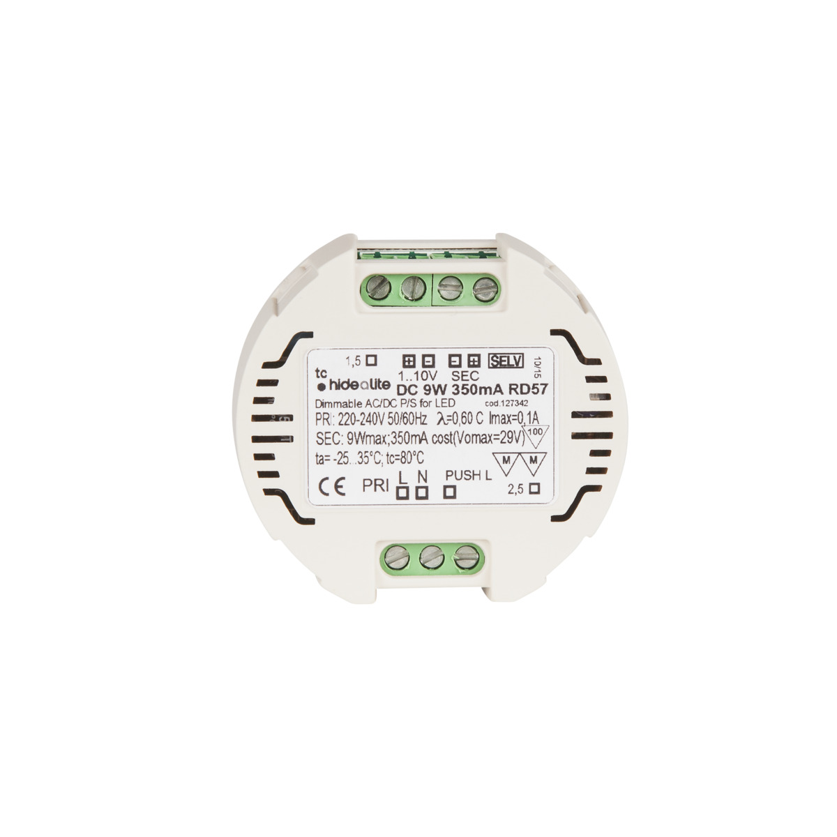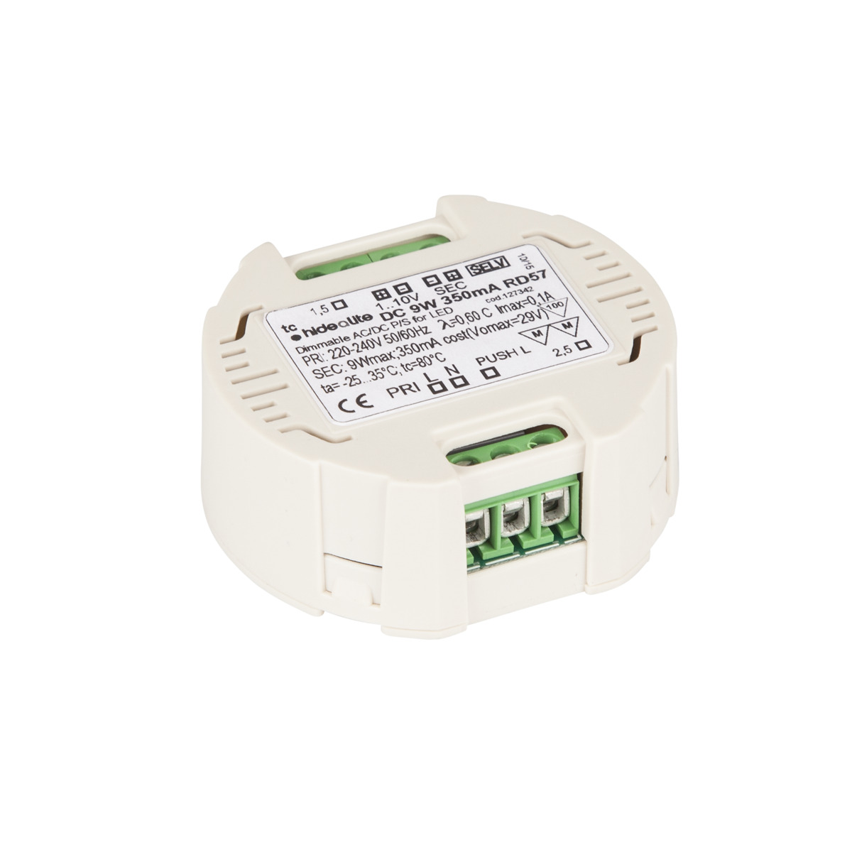Alt-i-ett-driver for LED med innebygd hybrid-dimming (PWM & AM). Klarer ved hjelp av én enkelt innstilling å drive og regulere lyset til flere typer LED-lyskilder, både konstantspenning DC (12 og 24 V) og konstantstrøm DC (250-900mA om 50mA trinn). Kan styres fra ett eller flere steder ved hjelp av en impulsbryter eller via potensiometer, 1-10V. Forminsket format for enkel montering i 1 ½ boks eller sammen med armaturen i Spot Guard Gles (3213839).