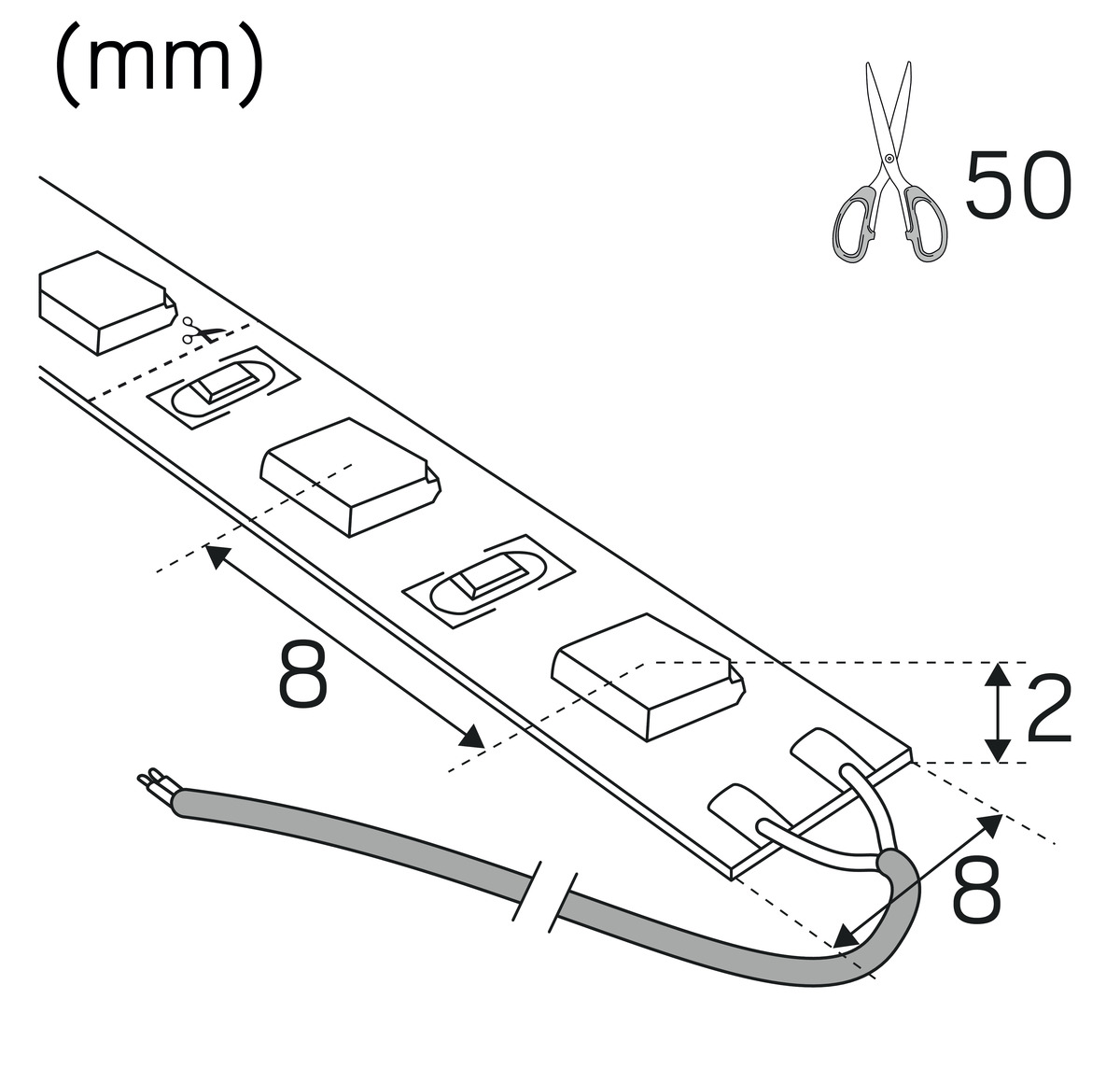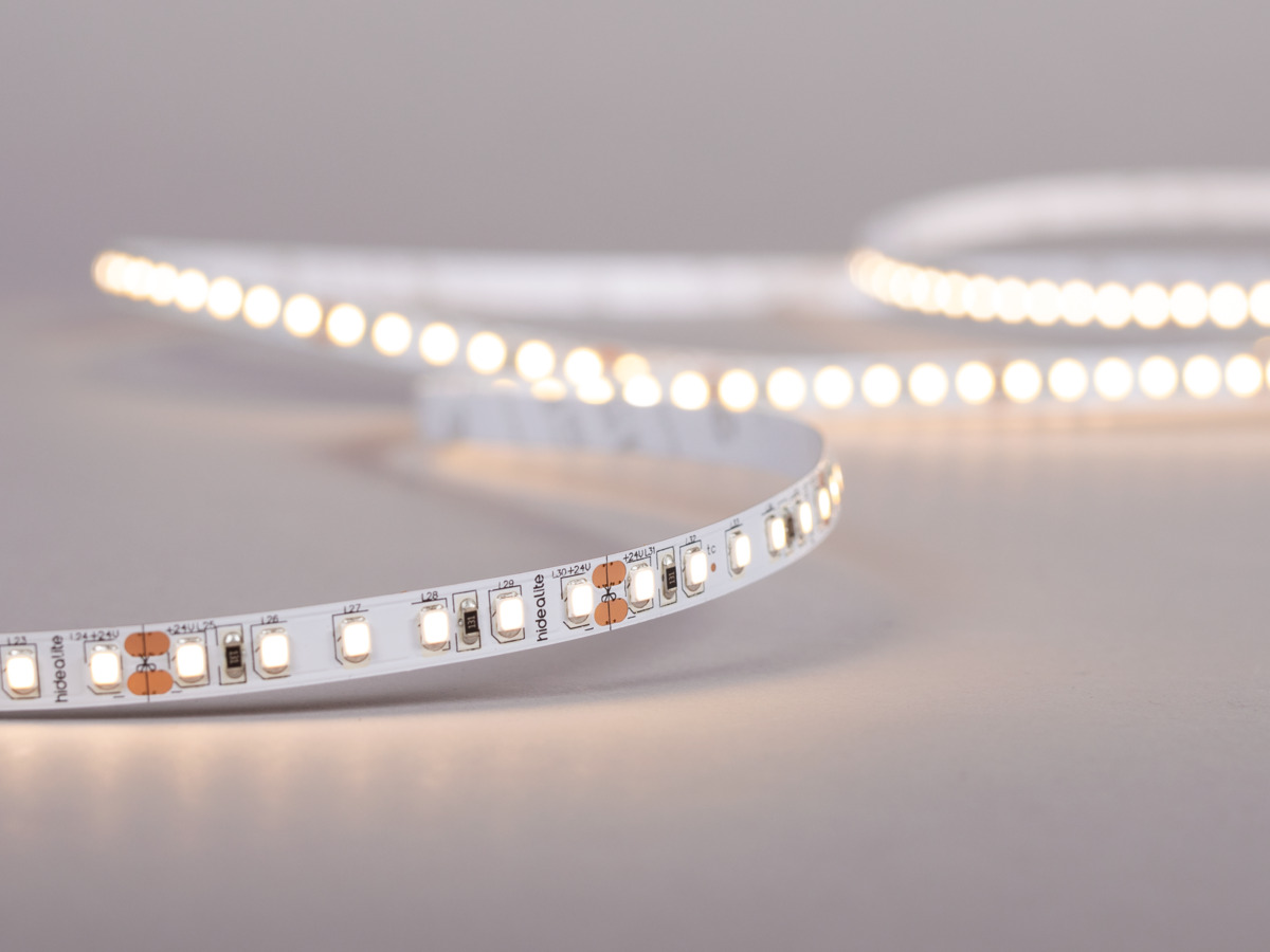 LEDstrip med teknologi som skjuler LED-chip og elektronikk under et homogent fosfor-/silikonlag. Med kort avstand mellom diodene skapes det en jevnt lysende linje uten profil eller dekklokk. COB-teknologi med høy lysstyrke og svært god effektivitet. Kappeintervall på 31,25 mm og sømløs skjøting gjør det enkelt å lage tilpassede lengder. Leveres som standard i ruller på 5 m med 2 m tilkoblingskabel i hver ende, 1 stk. hurtigkobling og selvklebende tape for enkel montering. På forespørsel leveres løpemeter med tilkoblingskabel etter ønske, standardleveranse av løpemeter skjer uten tilkoblingskabel. Driver bestilles separat etter ønsket dimmeteknologi og plassering. Maks. lengde 5 m.