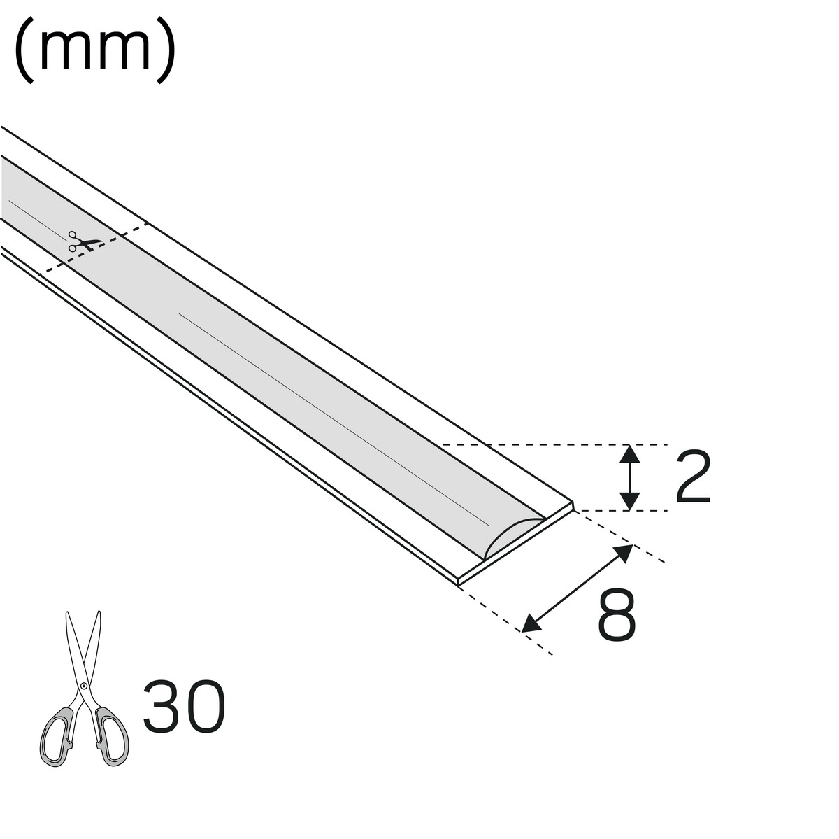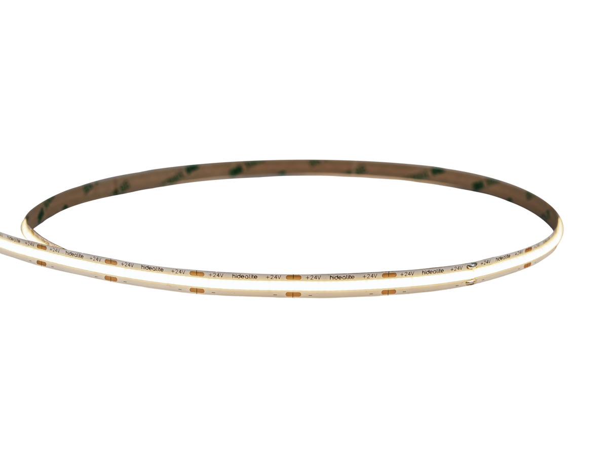 LEDstrip med teknologi som skjuler LED-chip og elektronikk under et homogent fosfor-/silikonlag. Med kort avstand mellom diodene skapes det en jevnt lysende linje uten profil eller dekklokk. COB-teknologi med høy lysstyrke og svært god effektivitet. Kappeintervall på 31,25 mm og sømløs skjøting gjør det enkelt å lage tilpassede lengder. Leveres som standard i ruller på 5 m med 2 m tilkoblingskabel i hver ende, 1 stk. hurtigkobling og selvklebende tape for enkel montering. På forespørsel leveres løpemeter med tilkoblingskabel etter ønske, standardleveranse av løpemeter skjer uten tilkoblingskabel. Driver bestilles separat etter ønsket dimmeteknologi og plassering. Maks. lengde 5 m.