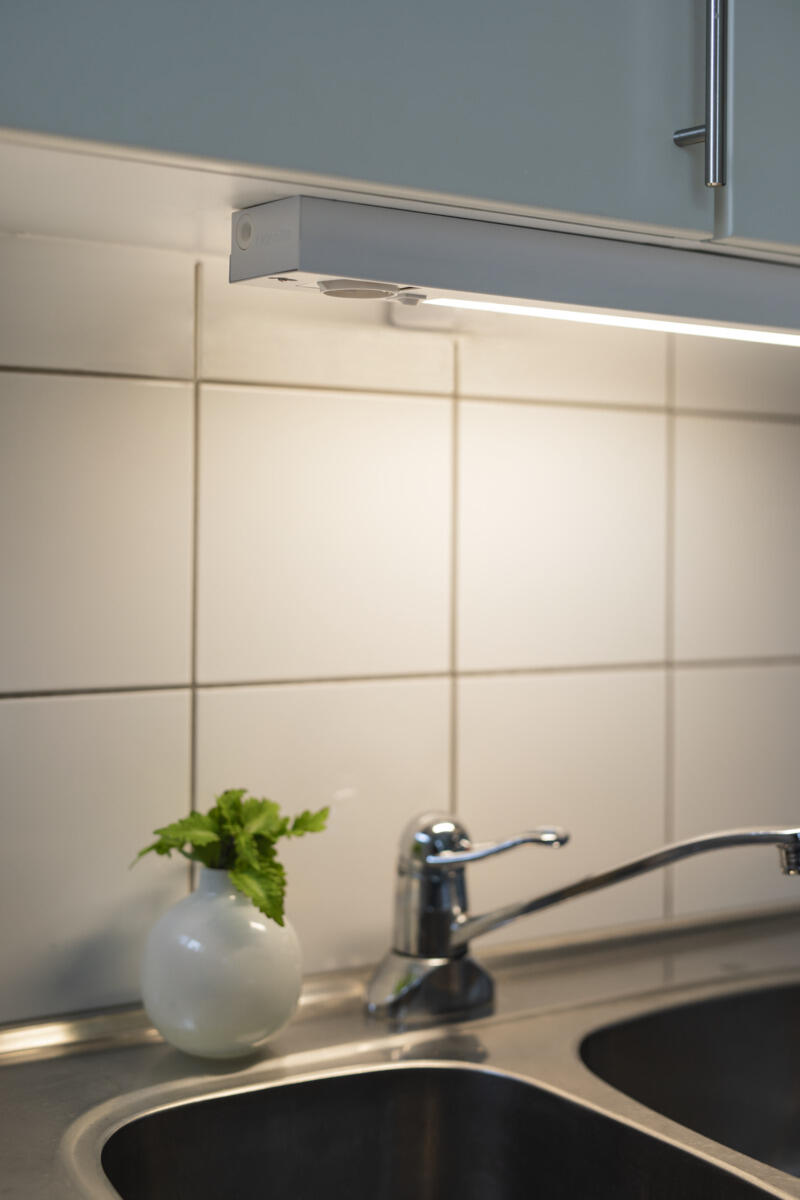 Lettinstallert underskapsarmatur med lineært lys. Perfekt erstatter for lysrørarmaturer eller ved nyinstallasjon og rehabiliteringsarbeid i for eksempel kjøkken og vaskerom. Bytt enkelt ut deler etter forbruk. Opalt lysutslipp som gir et velbalansert lysbilde på både arbeidsflate og vegg. Valgbar fargetemperatur via DIP-switch. Av/på-bryter på armatur. Installasjon med dobbeltsidig teip og skrue, god plass til kabler, nøkkelhullsmontering samt kabelgjennomføring på både kort- og langside.