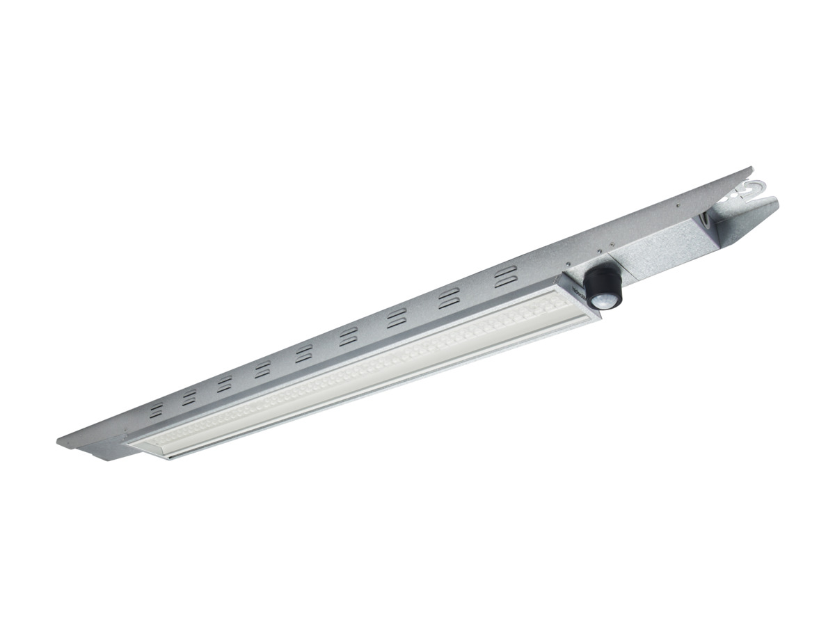 Høyeffektiv lysrørerstatter. Skyvbare multifester og separat koblingsplass i endestykkene. Hurtigkobl. 5x2,5mm2 for overkobling, muffer M20 og knockouts i endestykke for enkel montering. For mont. på armaturskinne, nøkkelhull for mont. i tak, integrert vaieroppheng med krok og kroklås. D-merket, IP65- og IK09-klassifisert for montering i røffere miljøer og områder med økt brannfare. Justerbar lysfluks via DIP-switch Power (On/Off og S). Godt egnet til for eksempel parkeringshus og støvete og skitne industrilokaler.