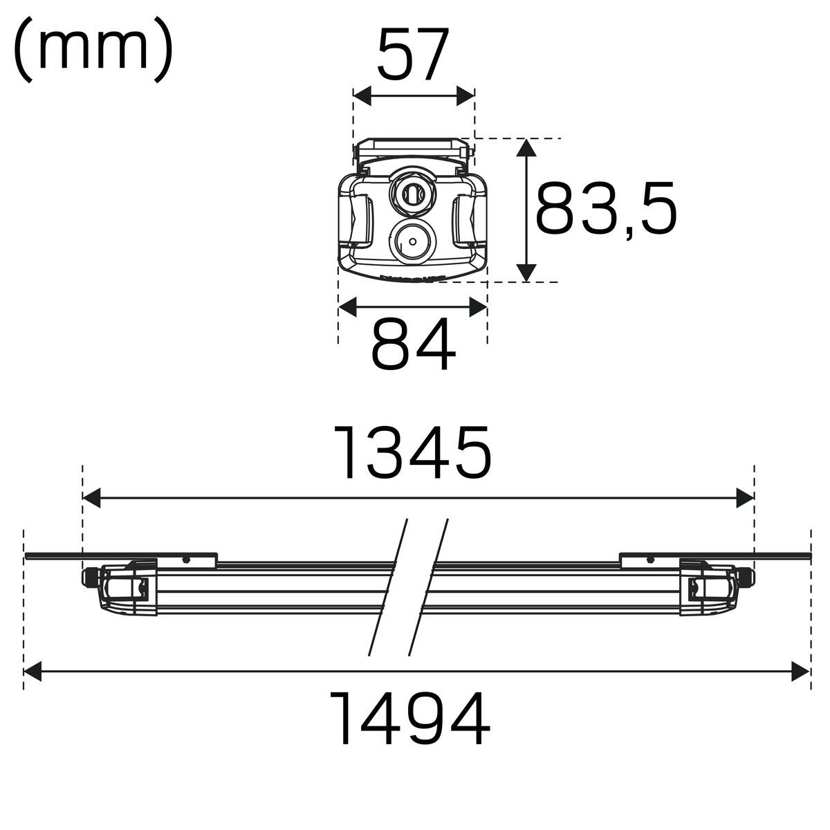 Høyeffektiv lysrørerstatter. Skyvbare multifester og separat koblingsplass i endestykkene. Hurtigkobl. 5x2,5mm2 for overkobling, muffer M20 og knockouts i endestykke for enkel montering. For mont. på armaturskinne, nøkkelhull for mont. i tak, integrert vaieroppheng med krok og kroklås. D-merket, IP65- og IK09-klassifisert for montering i røffere miljøer og områder med økt brannfare. Kan justeres til høyere lysmengde via DIP-Switch Power (On/Off og S). Godt egnet til for eksempel parkeringshus og støvete og skitne industrilokaler.