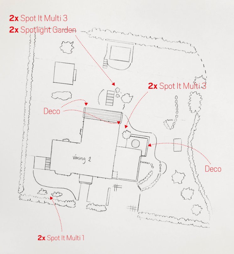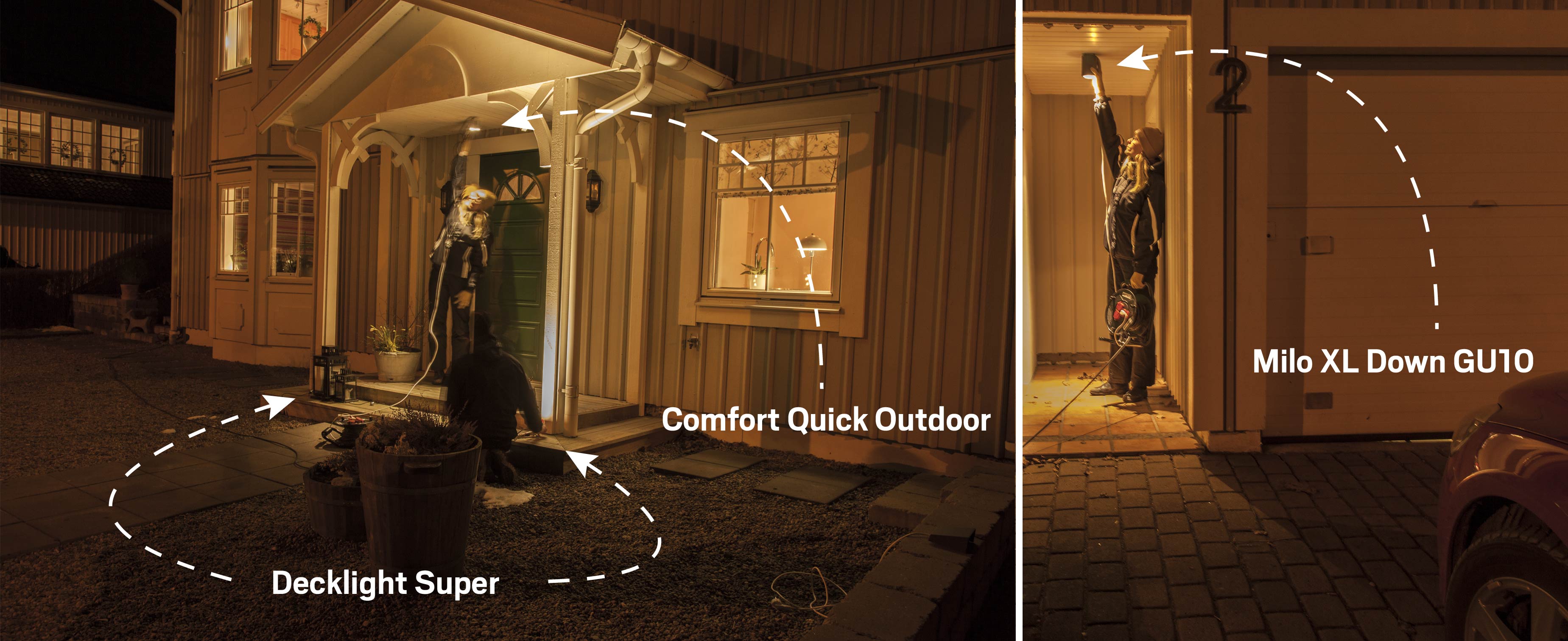 Det första intrycket av huset är dess framsida, och som dagsläget är relativt mörk. Det finns inget som lyser upp grusgången mot baksidan, för att underlätta navigeringen, och det finns endast ett par äldre väggarmaturer som lyser upp entréerna.