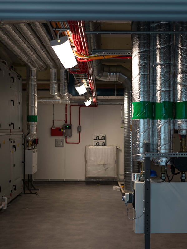 I förråds- och teknikutrymmen används Kloss och lysrörsersättaren Liteline G2 IP44 – två armaturer som levererar ett jämnt arbetsljus.