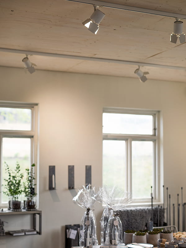 I det lilla samhället Kaxholmen cirka en mil nordost om Jönköping finns detta mysiga café och butik – Grafitgrå. Här går det att njuta av hembakat fika och flera mat-alternativ, och samtidigt inspireras av både miljö och inredning. Under åren har företaget vuxit, och i samband med en ombyggnation installerades belysning från Hide-a-lite.