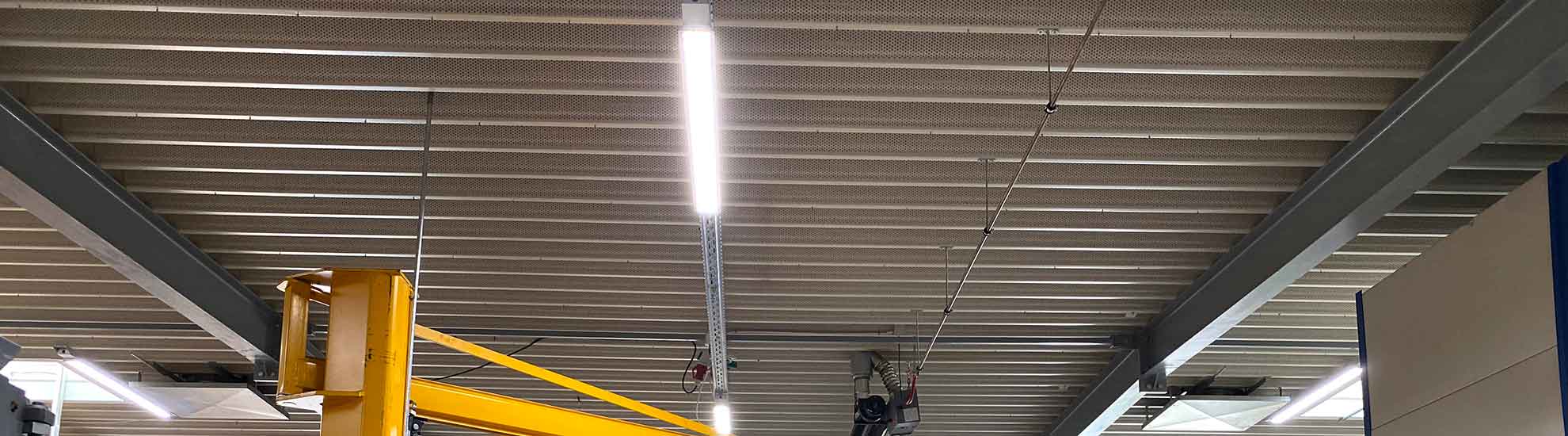 Indline IP23 gör det även möjligt att justera ljusflöde och effekt via DIP-switch. I ytorna där monteringsarbeten utförs är armaturerna inställda på en högre ljusnivå för att skapa ett fullgott arbetsljus. Indline IP23 är här inställd på 115W, vilket ger 17 250 lumen per armatur.