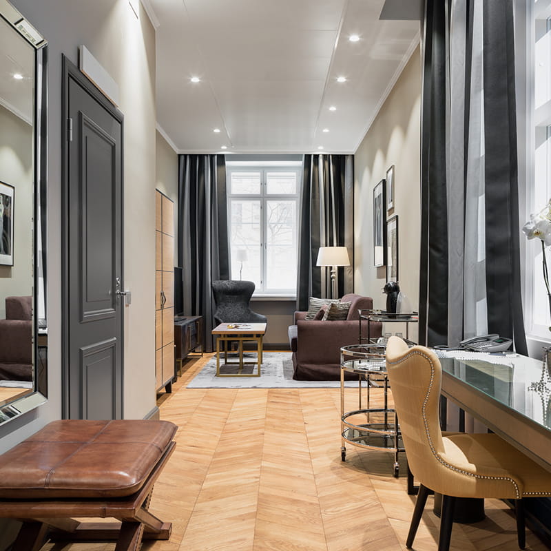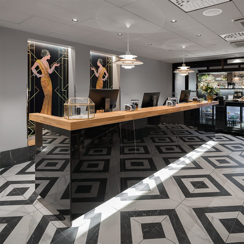 Hotel Turun Seurahuone har en lyxig och spännande helhet som erbjuder sina gäster en mängd olika upplevelser med oväntade detaljer. I entrén till hotellet möts du av en ovanlig lounge, med svartvitt-rutigt golv inspirerat av hotellets ursprungliga art deco-stil. Lobbyn och dess unika atmosfär inbjuder besökare att njuta, spendera tid, arbeta eller ta en drink.