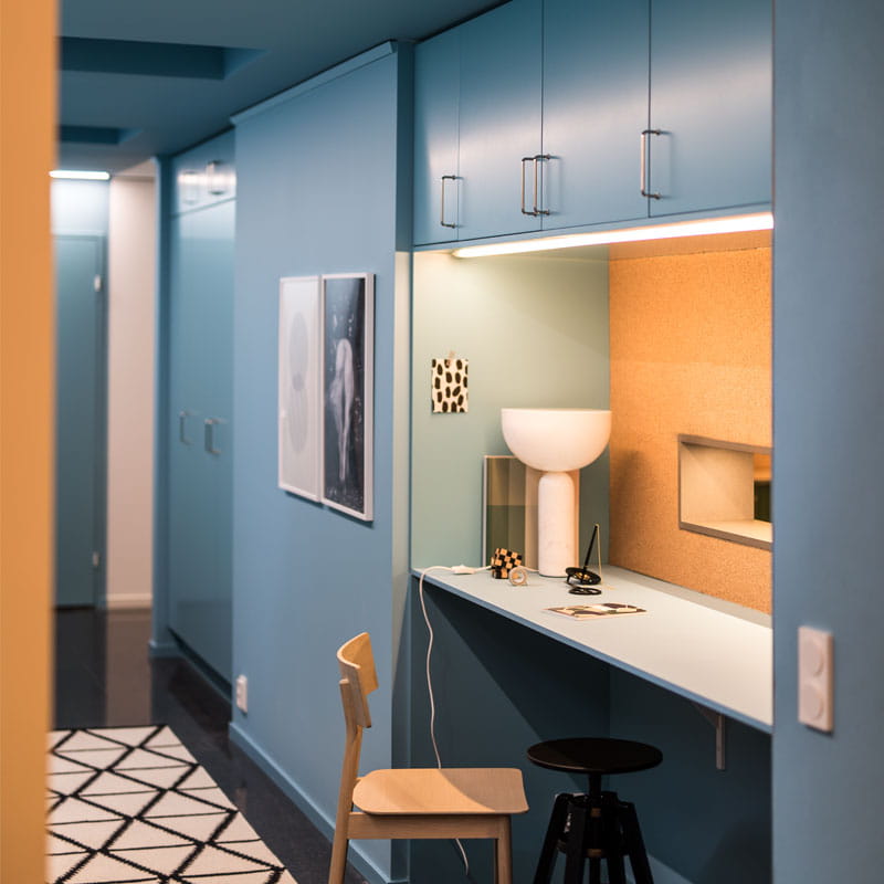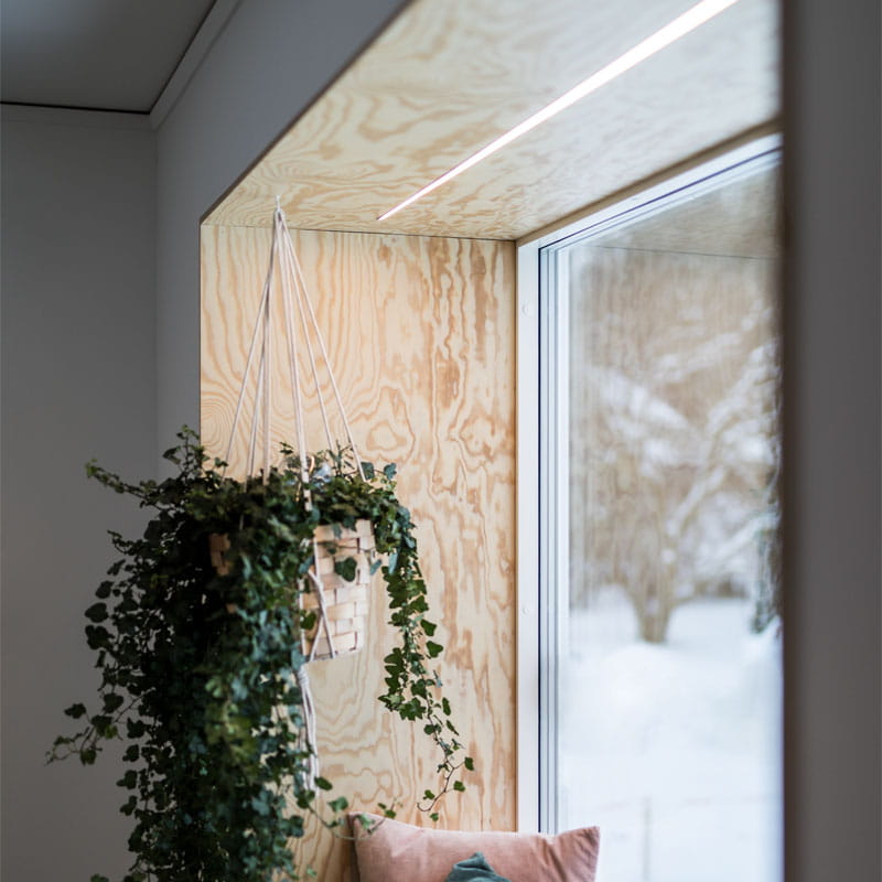 Under hösten 2016 lanserade Movehome ett koncept vid namn Movehome LAB som handlade om att utforska framtidens boende och utmana synen på Prefab och typisk planlösning. Ett väldigt kul och spännande projekt som har fått mycket uppmärksamhet. När det var dags för själva bygget av det det så kallade koncepthuset i Stockholm fick Hide-a-lite uppdraget att ta fram ett belysningskoncept som inte bara skulle upplevas modernt, utan även kunna styras smart. Inredningskonceptet var redan spikat och klart, vilket gjorde att vi fick anpassa oss efter husets inredning och kulörer, vilket gjorde jobbet att ljussätta extra roligt eftersom ljus och material påverkar varandra väldigt mycket. Här kunde vi verkligen skräddarsy en belysningslösning som både framhäver och kompletterar inredningsvalen med tanke på att vår ljusdesigner Ida fick ganska fria tyglar. - Min tanke var att vi skulle vara lite djärva och våga sticka ut. Därför valde vi att skippa downlights helt och hållet och enbart använda LEDstrips, säger Ida Raymondson.