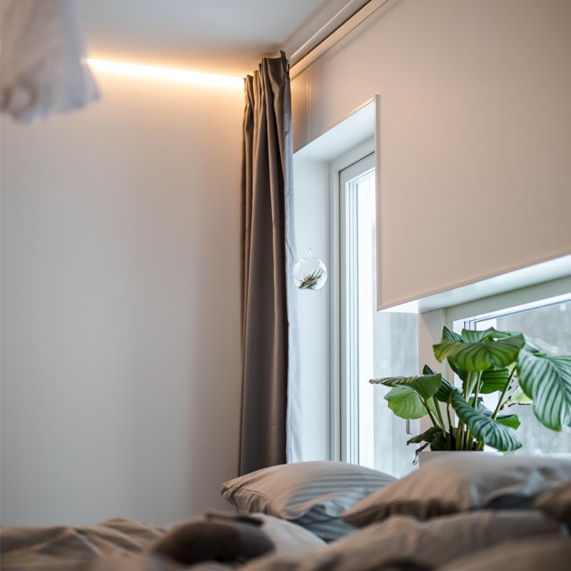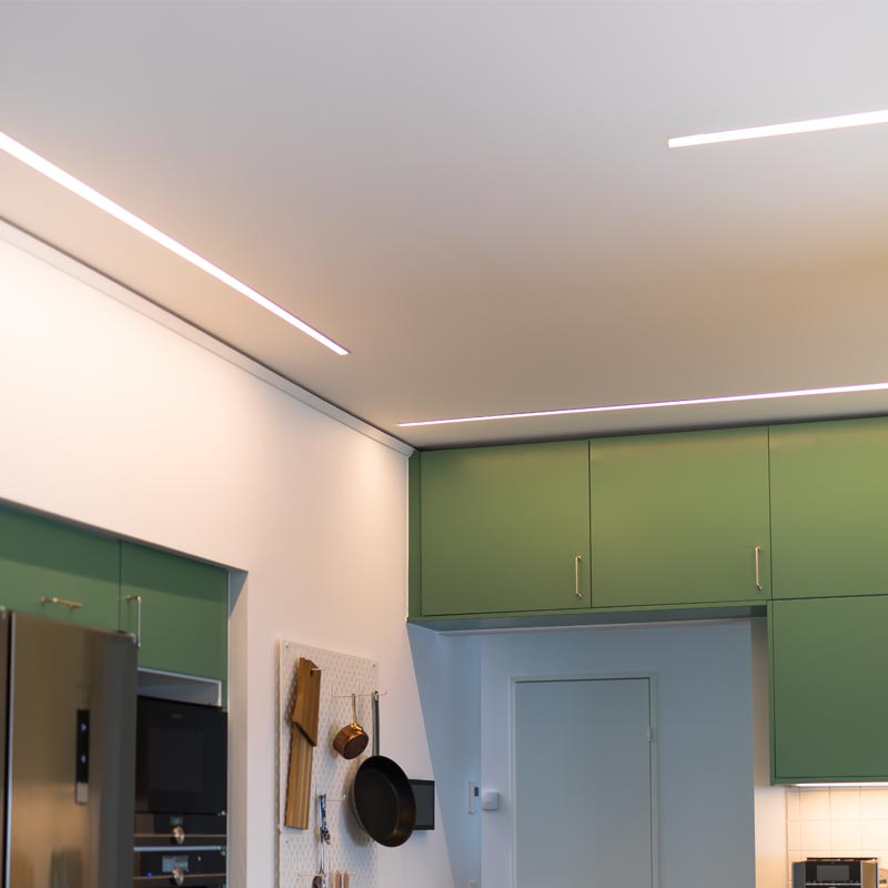 En av fördelarna när det kommer till att använda sig av LEDstrips är att de funkar utmärkt som både dekorativ belysning och arbetsljus. De är enkla att integrera och kan anpassas på många olika sätt för att passa in i sin omgivning. De behöver heller inte placeras ut lika omsorgsfullt som downlights för att exempelvis centreras framför ett fönster eller köksskåp, eftersom de ger ett linjärt ljus längs hela skåpet eller fönstrets längd. De skapar dessutom ett jämt och mjukt ljussken i kombination med opalt täcklock och kan användas på många olika ställen i och utanpå huset.
