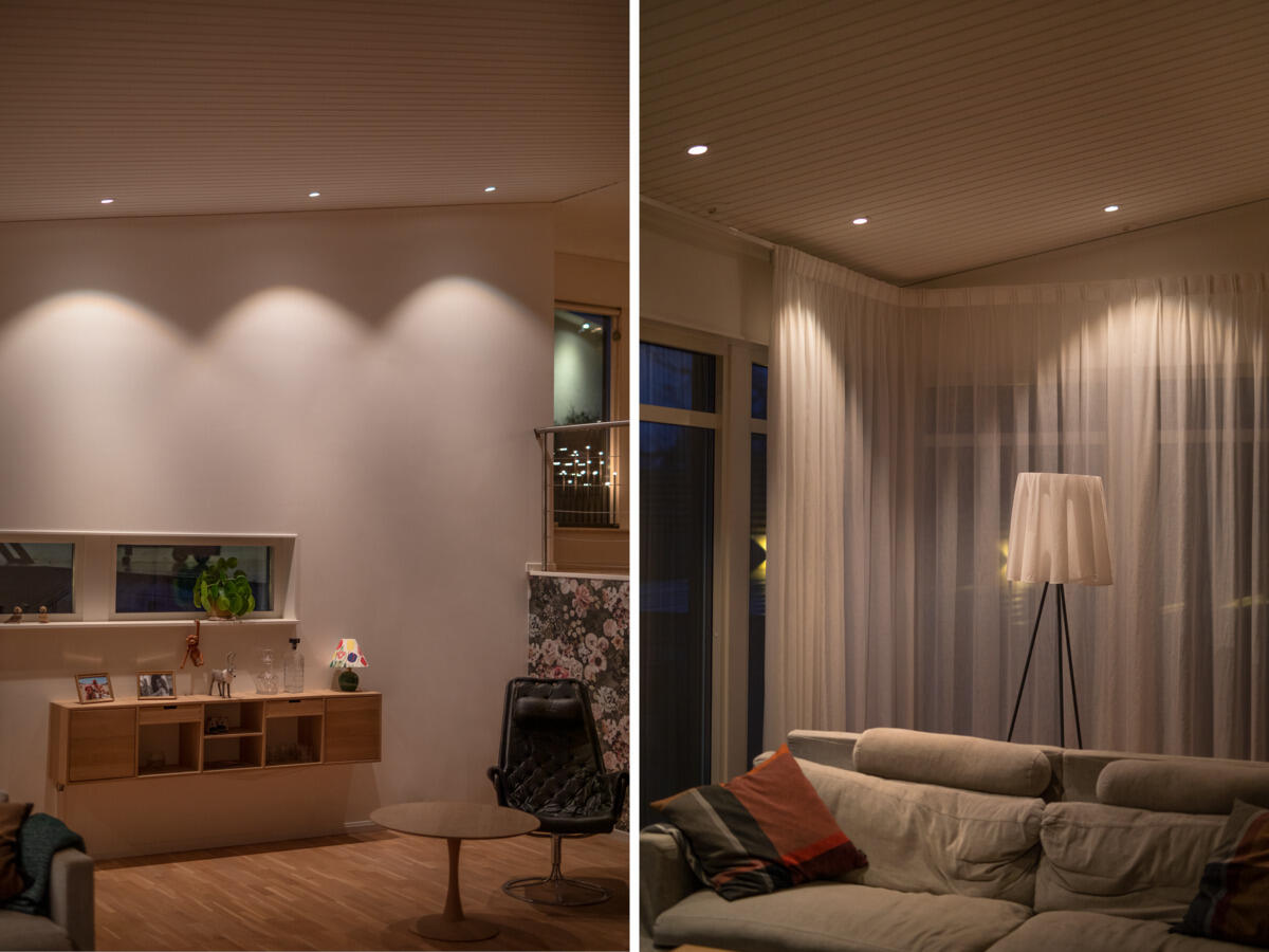 Lågbyggande, tiltbar downlight anpassad för montage i glespanel 28mm och godkänd för montage direkt mot isolering. Håltagning mellan 55-63mm – perfekt ersättare för gamla halogenarmaturer vid ROT-arbeten. Reflektorteknik, väl avbländad ljusbild och mycket god färgåtergivning, Ra>95. IP44-utförande för montage inne och ute. Fasdimringsbart drivdon för enkel 230V-anslutning, 3-polig snabbplint för vidarekoppling och skruvfri dragavlastning för kabel. Dimbar med de vanligaste dimrarna på marknaden. .