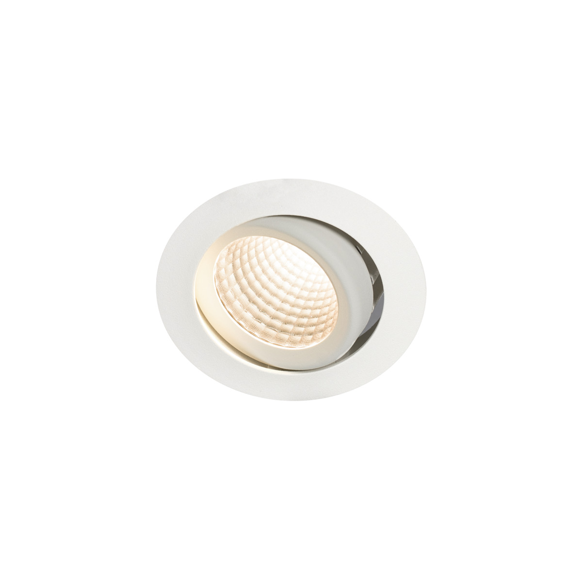 Effektiv LED-downlight med insänkt ljuskälla och tunn kant för diskret takanslutning, med IP44 runt om. Modern LED- och reflektorteknik ger högt ljusutbyte, distinkt ljusbild och bländfritt ljus med mycket god färgåtergivning. Lättinstallerad och lågbyggande armatur komplett med fasdimringsbart drivdon, snabbplintar för vidarekoppling samt skruvfri dragavlastning för enkel anslutning. Dimbar med de vanligaste dimrarna på marknaden. Kan levereras med Konverter DALI.