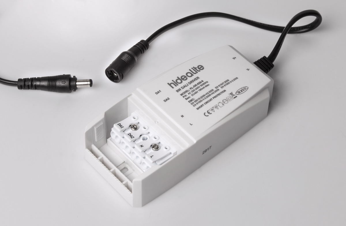 Allt-i-ett konverter med inbyggd hybrid-dimmer för reglering med standard DALI2-gränssnitt (1-100%). Klarar med en enkel inställning av att driva och ljusreglera flera typer av LED-ljuskällor, både konstantspänning DC (24V) och konstantström DC (250, 350, 400, 450, 500, 550, 600 och 700mA). Enkel inställning av strömstyrka med dip-switch. Slimmat format för montage i 1½ dosa med extra utrymme anpassat för drivdon eller tillsammans med armaturen i Spot Guard Gles.