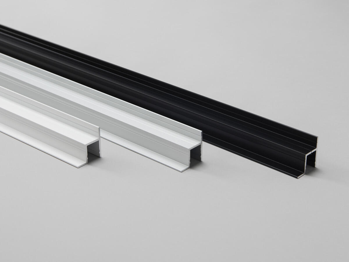 Lågbyggande profil med brett användningsområde, för att bara skydda LEDstrippen och öka kylningen eller som en komplett armatur. Tack vare den nätta designen är den lätt att använda även på platser där utrymmet är begränsat. Som t.ex. bänkbelysning, för släp- och arbetsljus i receptions-diskar och i vitrinskåp. Med de tre spåren på profilen justeras ojämnheter i underlaget vid montage med clips. Se översiktstabell under fliken dokument för passade LEDstrip.