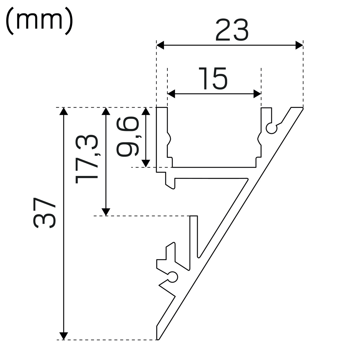 • Kilformad, perfekt för utanpåliggande montage för upp- och nerljus eller hörnmontage