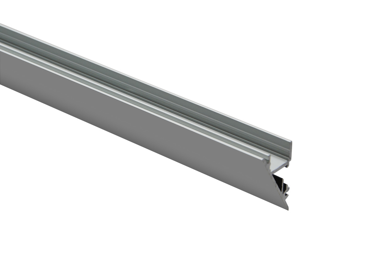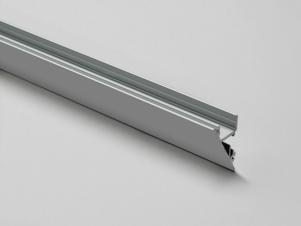 Kilformad profil som skapar en mjuk ljuseffekt. Finns i tre färger: vitt, svart och aluminium. Skapa både upp- och nerljus eller använda den för sidoljus i hörn. Profilen har plats för intern kabeldragning, vilket gör installationen snabbare och öppnar upp fler monteringsmöjligheter. Utanpåliggande profil som skapar ett dekorativt släpljus.