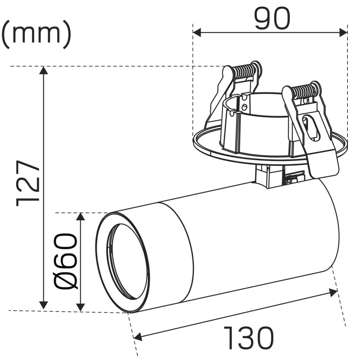 - 230V-spotlight med integrerat dimbart drivdon, fäste för infällt montage
